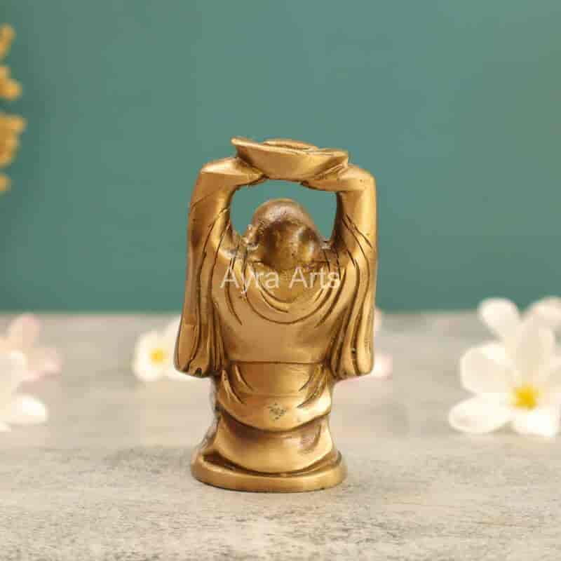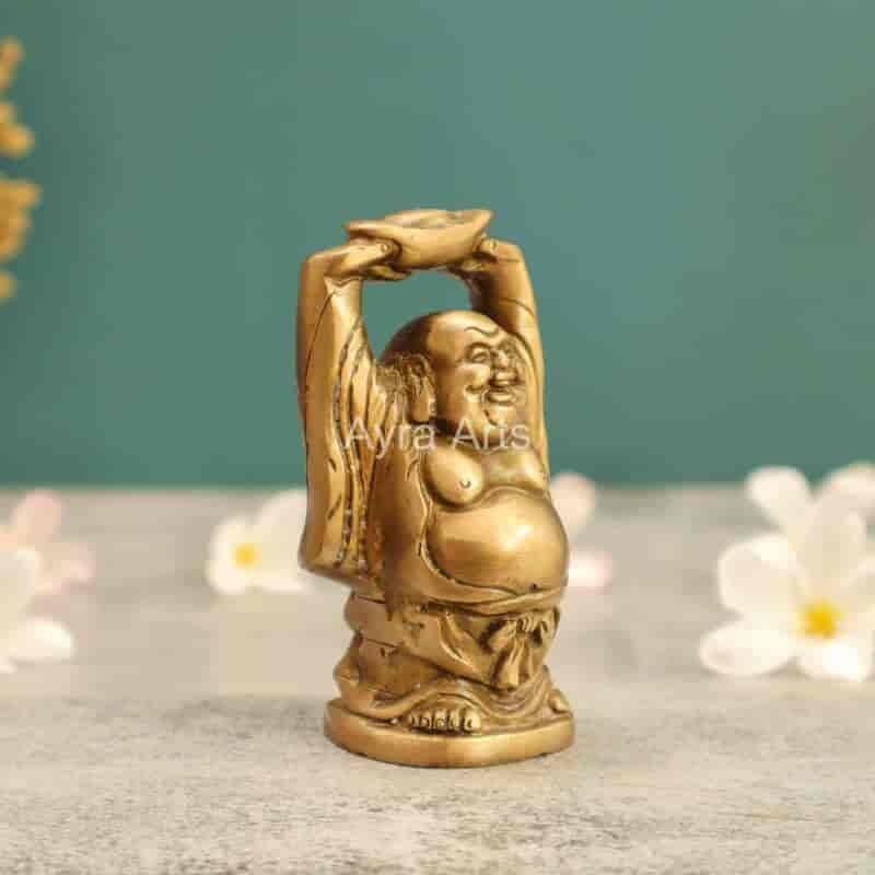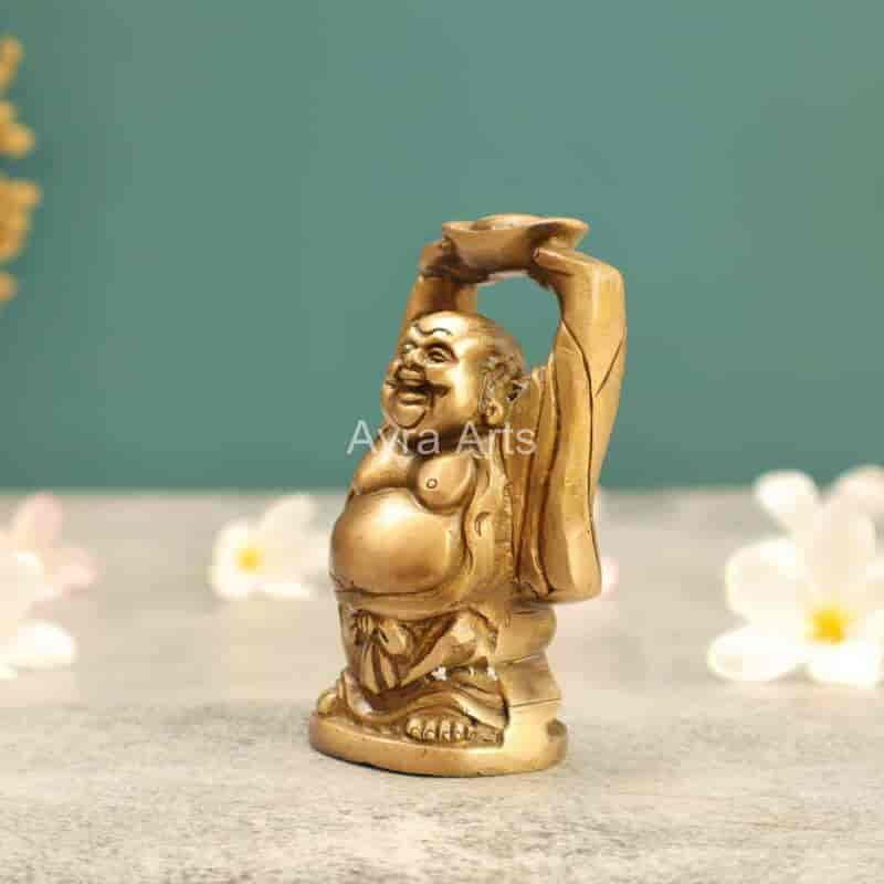 Antique-style 3.7-inch Brass Laughing Buddha monk — a symbol of happiness and prosperity.