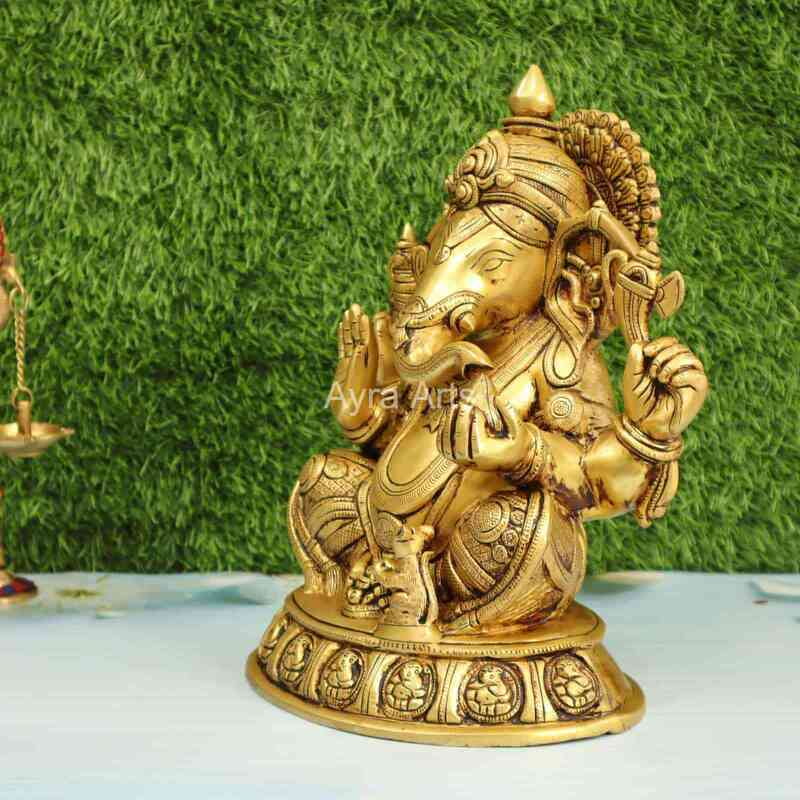 Ayra Arts presents the divine Asta Vinayaka Ganesh Idol in Brass, standing majestically at a height of 12 inches. Meticulously crafted, this exquisite masterpiece embodies the auspicious presence of Lord Ganesh in his Asta Vinayaka form, symbolizing various divine attributes. Made from premium brass, this idol radiates timeless elegance and spiritual significance, inviting blessings and auspiciousness into your home. Whether displayed on your altar, as a centerpiece, or as a sacred symbol, this creation from Ayra Arts serves as a beacon of divine grace and prosperity, fostering an atmosphere of abundance and spiritual fulfillment.