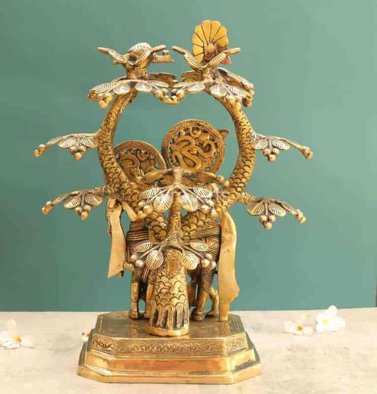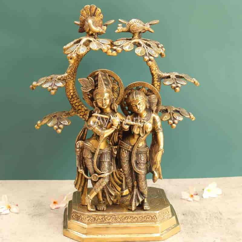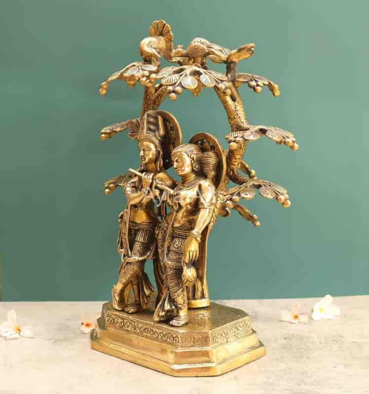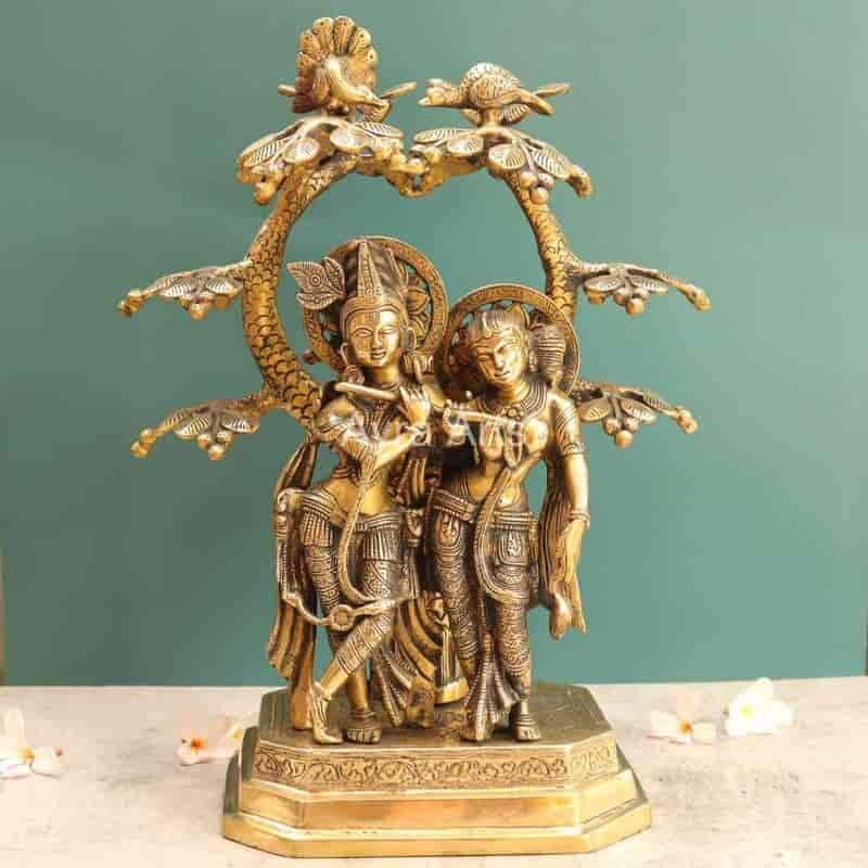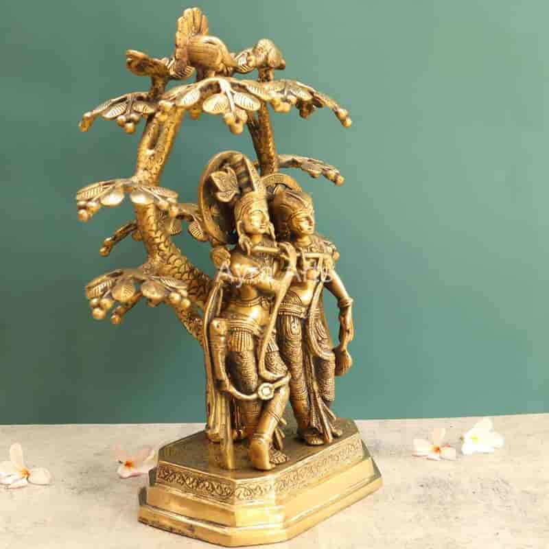 Bring home divine love with this beautifully crafted 17-inch Brass Radha Krishna Under The Tree statue.