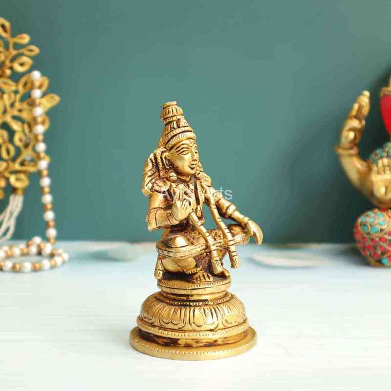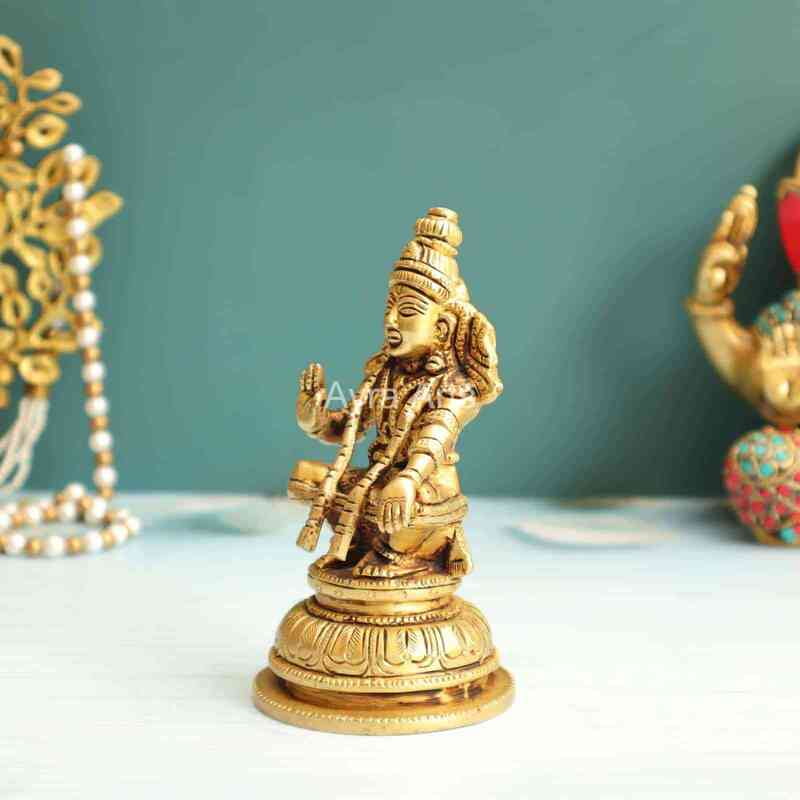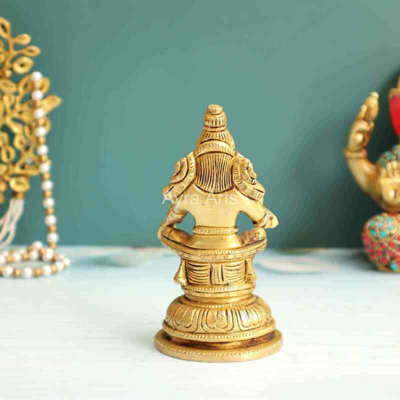 Introducing Ayra Arts Brass Ayyappan statue, standing gracefully at 5.5 inches in height. Meticulously crafted, this exquisite masterpiece captures the serene presence of Lord Ayyappan, the beloved deity worshipped for protection and fulfillment of desires. Made from premium brass, this statue exudes timeless elegance and spiritual significance, symbolizing devotion, courage, and divine grace. Whether placed on your home altar, desk, or as a decorative accent, this creation from Ayra Arts invites blessings and adds a touch of sacredness and beauty to your space, fostering an atmosphere of reverence, tranquility, and spiritual connection.