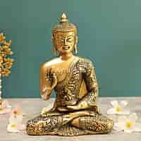 Brass Buddha Statue for Home and mandir - 8.5 Inch Height
