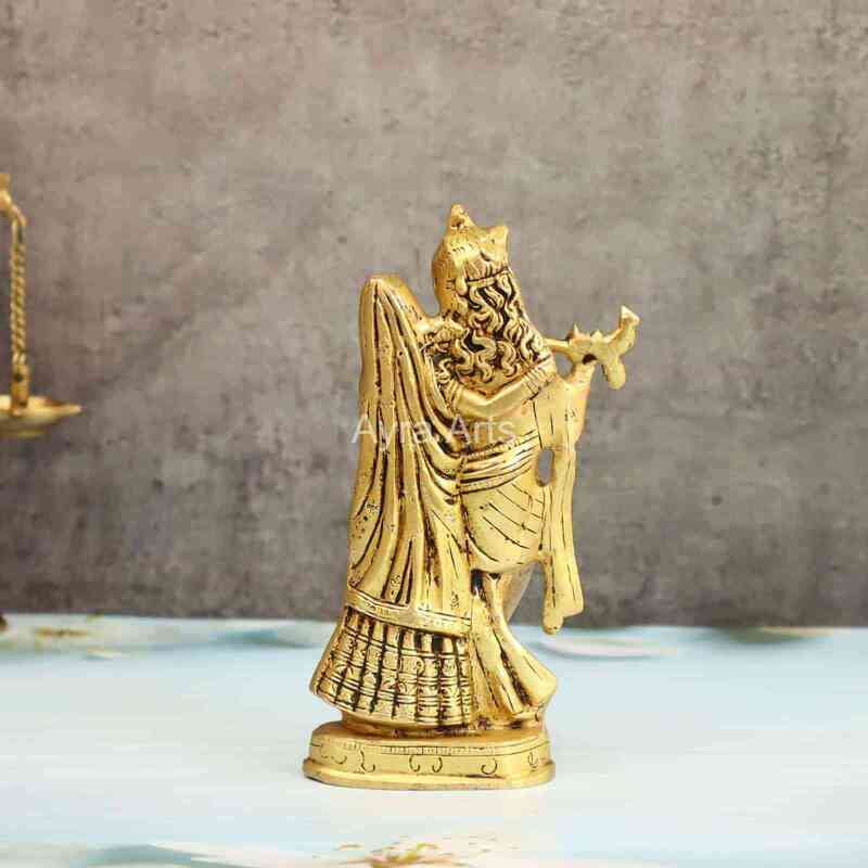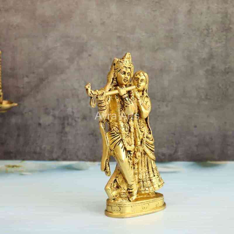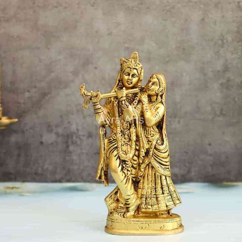 Experience the embodiment of divine love with Ayra Arts Brass Cute Radha Krishna Idol, standing gracefully at 8 inches in height. Meticulously crafted, this enchanting masterpiece captures the eternal bond between Radha and Krishna, symbolizing the pinnacle of love and devotion. Made from premium brass, this idol radiates timeless beauty and spiritual significance, evoking feelings of warmth and harmony. Whether displayed in your home altar or as a decorative symbol, this creation from Ayra Arts serves as a reminder of the power of love to transcend time and space. Embrace the divine presence of Radha and Krishna and invite love and serenity into your life with this captivating idol.