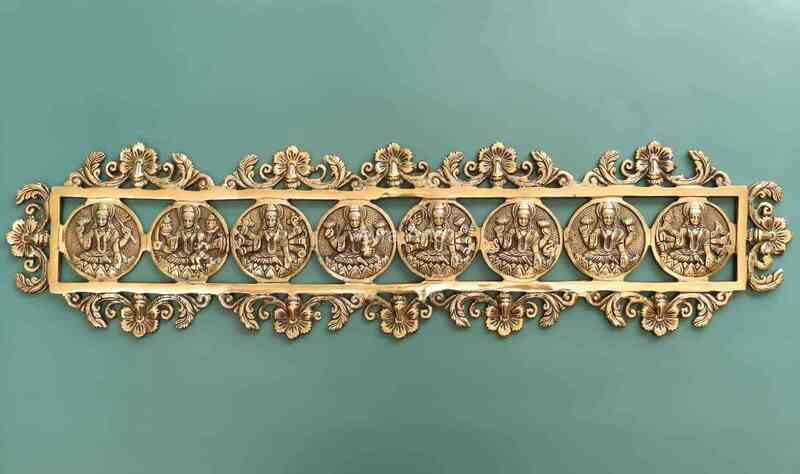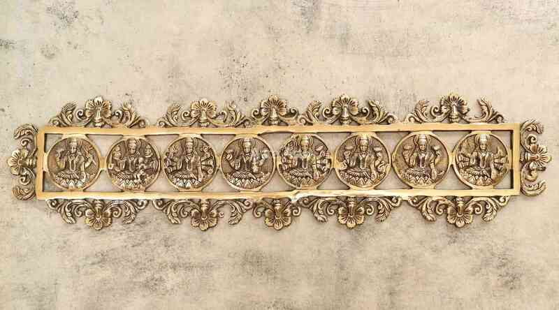Brass Divine Ashtalakshmi Wall Hanging Panel for Diwali Puja Mandir Home Decor- 34 Inch Length