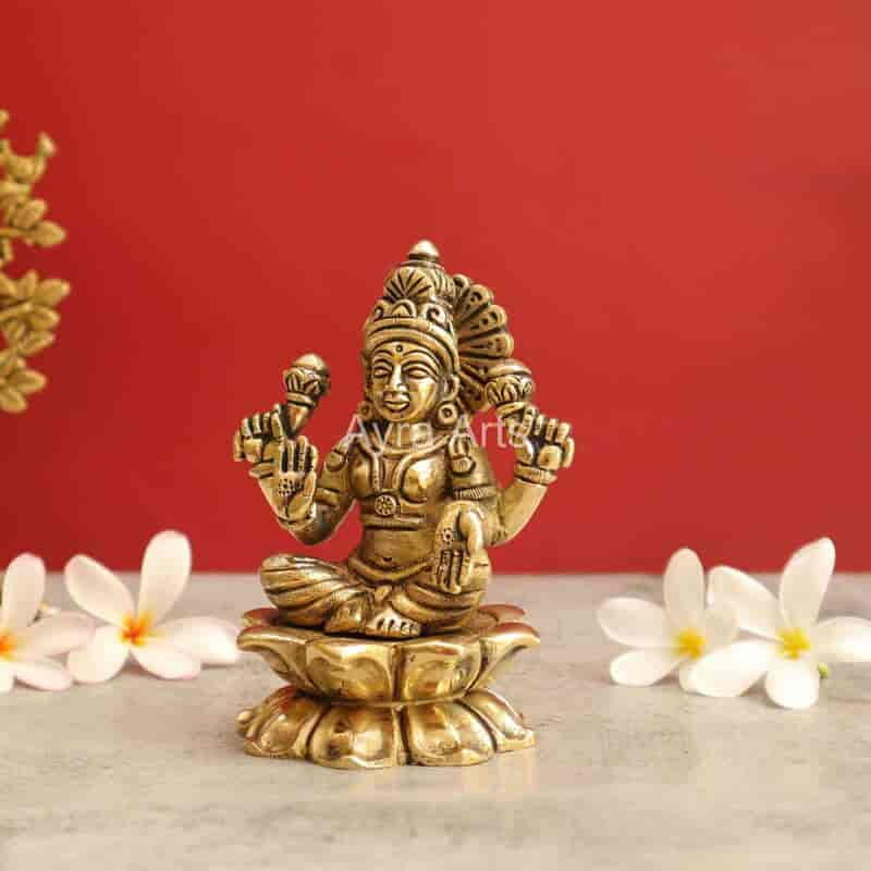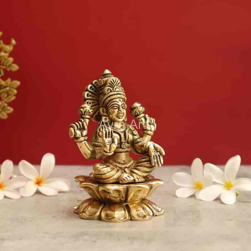 Brass Idol/ Lakshmi Statue Sitting On Lotus - 5 Inch Height