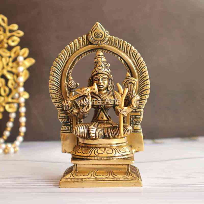 Introduce divine elegance into your home with Ayra Arts Brass Kamakshi Lalitha Rajarajeshwari Tripura Sundari Shodashi idol, standing at a graceful height of 6 inches. Meticulously crafted, this exquisite masterpiece captures the serene and powerful essence of the Goddess, symbolizing beauty, wisdom, and divine feminine energy. Made from premium brass, this idol radiates timeless charm and spiritual significance, making it a perfect addition to your home altar or sacred space. Whether used for worship or as a decorative accent, this creation from Ayra Arts invites blessings, peace, and spiritual connection into your life, fostering an atmosphere of reverence and divine grace.