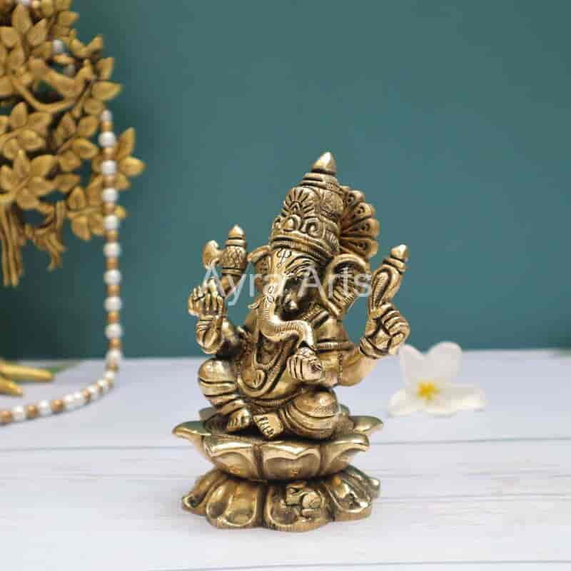 Beautiful 4.8-inch Brass Kamal Sitting Ganesha Ganesh idol — a unique collectible.