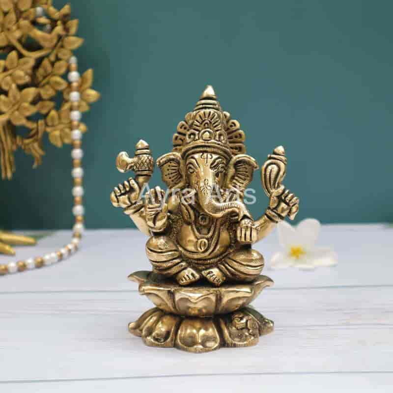Brass Kamal Sitting Ganesha Ganesh Idol - 4.8 Inch Height