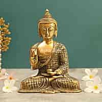 Add spiritual elegance with this 7.5-inch Brass Lord Buddha Statue, suitable for mandir and home decor.