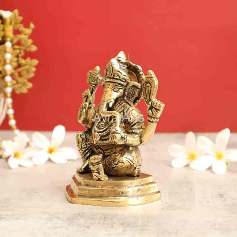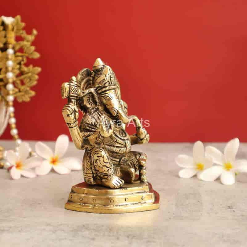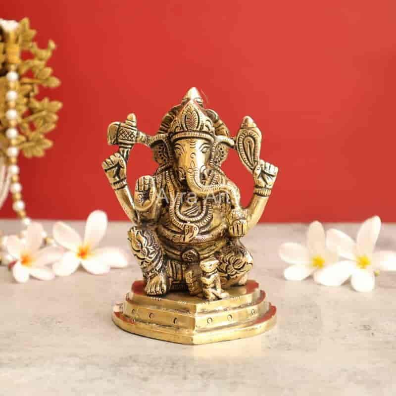 Traditional 5-inch Brass Lord Ganesh idol — perfect for home and office decor.