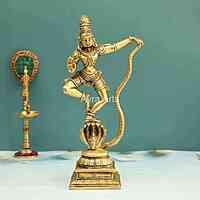 Discover the divine elegance of Ayra Arts Brass Lord Krishna figurine, depicting the triumphant scene of Lord Krishna dancing atop the Kaliya serpent Naag, symbolizing the victory of good over evil. Crafted with meticulous attention to detail, this exquisite 12-inch tall masterpiece captures the essence of Hindu mythology with grace and finesse. Made from premium quality brass, this figurine radiates timeless charm and spiritual significance, making it a perfect addition to your home decor or a thoughtful gift for loved ones. Admire the intricate craftsmanship as Lord Krishna's mesmerizing dance symbolizes the eternal battle between righteousness and malevolence, evoking a sense of peace and serenity in any space. Embrace the divine aura and celebrate the rich cultural heritage with this captivating portrayal of Lord Krishna's valor and compassion.