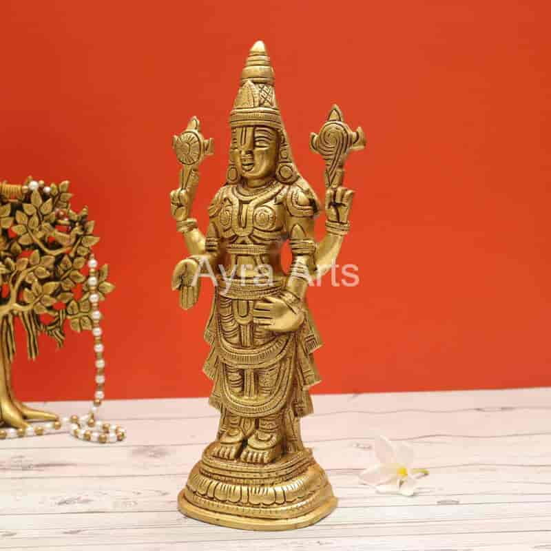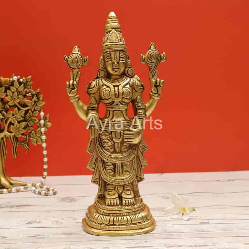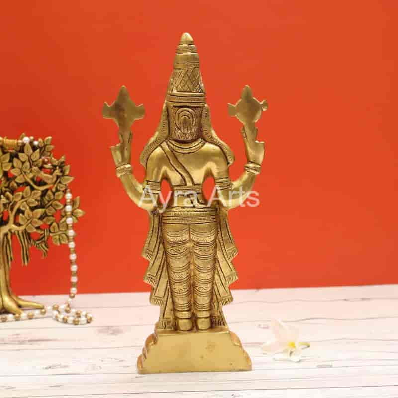 Impressive 12-inch Brass Lord Tirupati Balaji idol — perfect for grand temple displays.