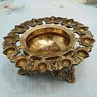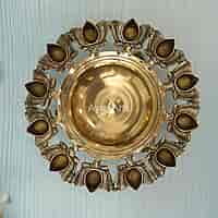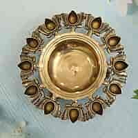 Light your home with this 10.5-inch Brass Lotus Design Diya Urli — elegant and functional.