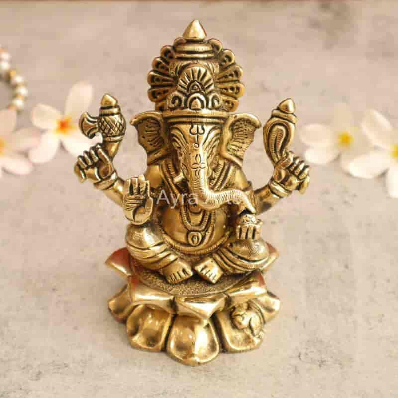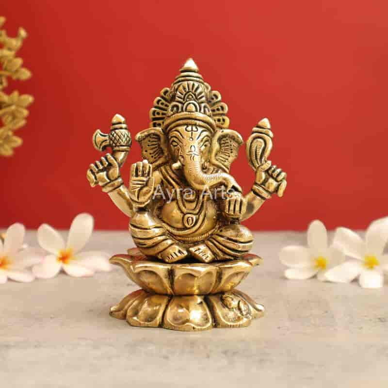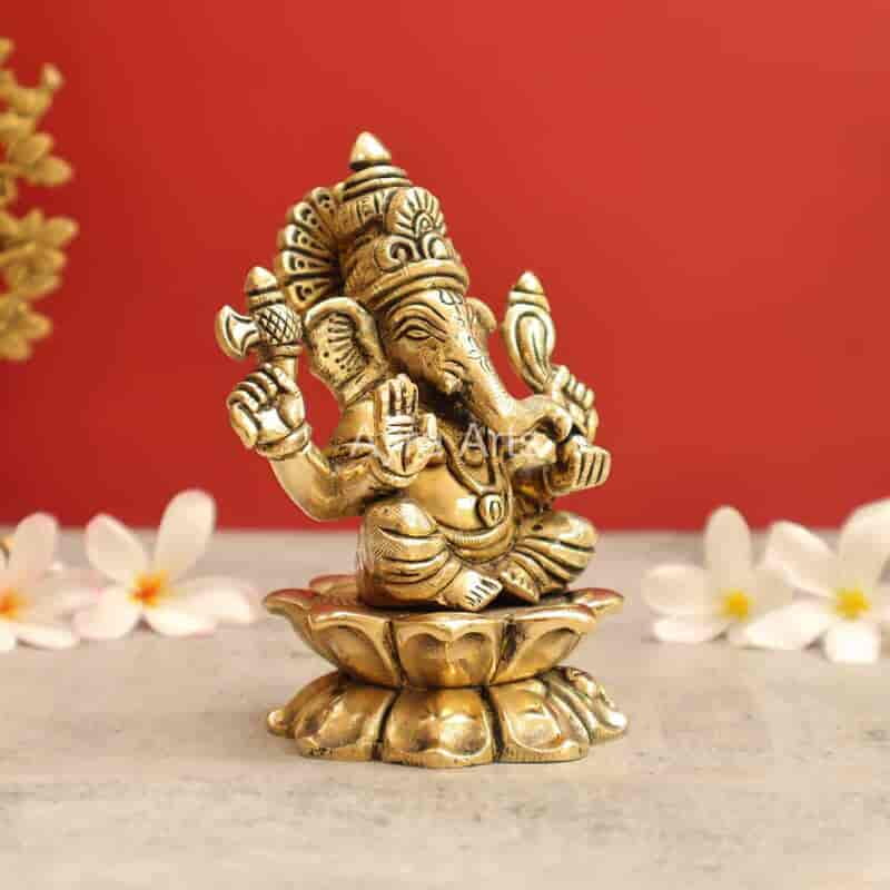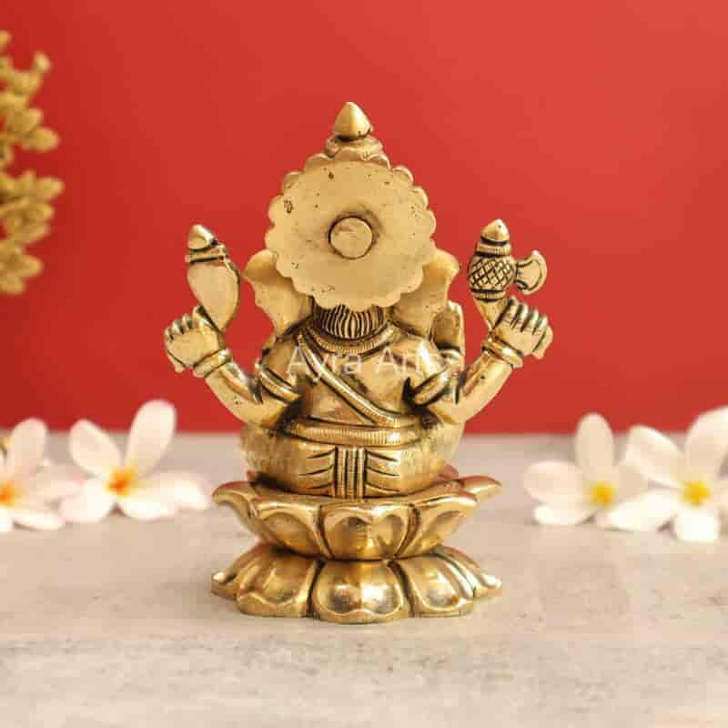 Brass Lotus Sitting Ganesha Statue - 5.2 Inch Height