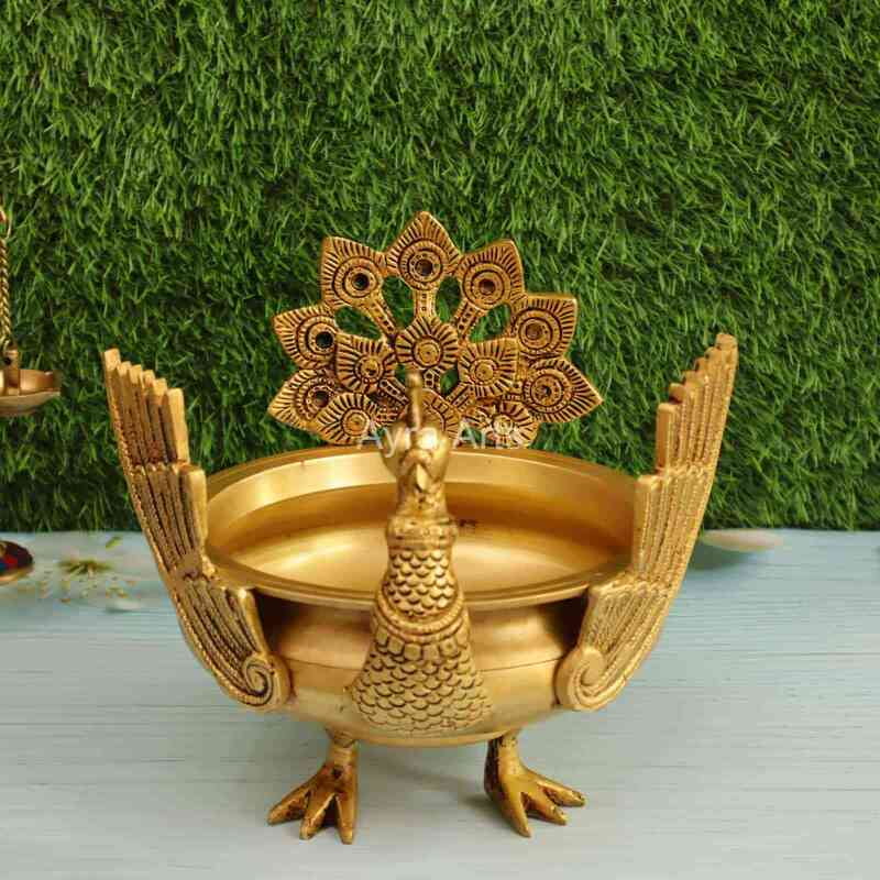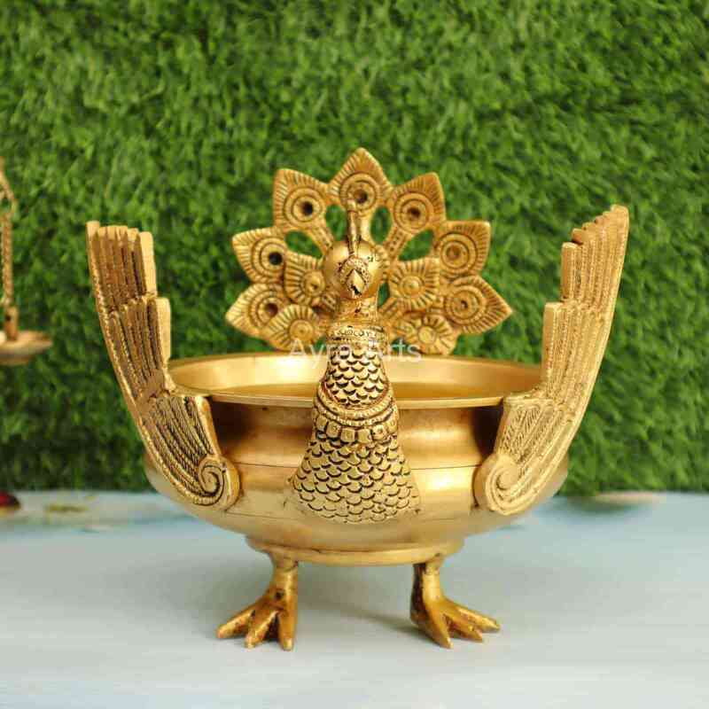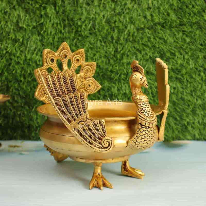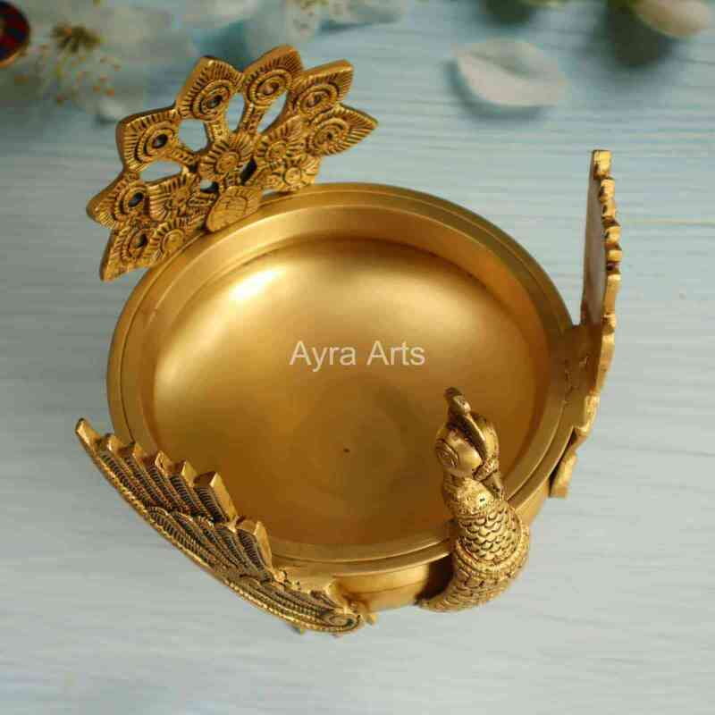 Brass Peacock Urli for Home Decorative Bowl - 8.5 Inch Height