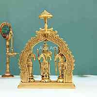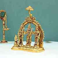 Adorn your sacred space with the divine presence of Ayra Arts Brass Ram Darbar with Makara Thoranam, featuring the revered Ram Parivaar Family, including Lord Ram, Sita, Laxman, and Hanuman, standing gracefully at 9.5 inches in height. Meticulously crafted, this exquisite idol captures the eternal bond and benevolence of the divine family. Made from premium brass, it exudes timeless elegance and spiritual significance, symbolizing righteousness, devotion, and protection. Whether displayed in your home shrine or meditation room, this statue invites divine blessings and auspicious energy into every corner. Embrace the sacred union of the Ram Parivaar and elevate your spiritual journey with this captivating creation from Ayra Arts.