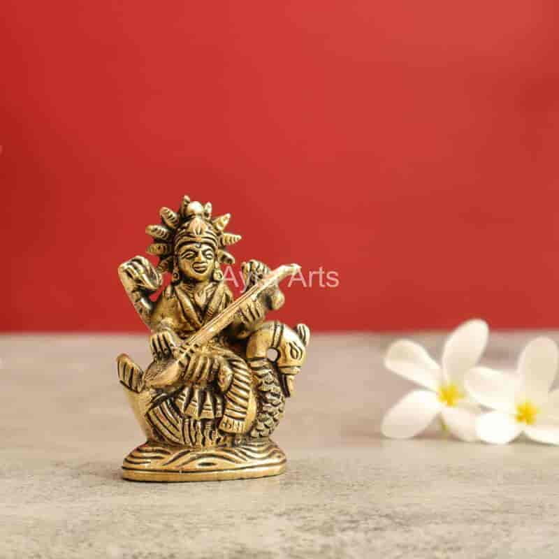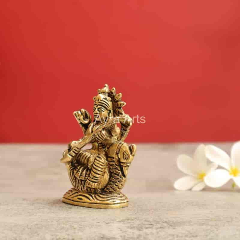 Brass Shree Maa Saraswati Devi Idol - 3.2 Inch Height