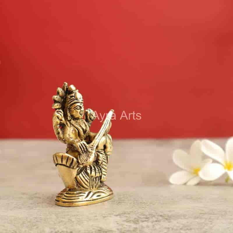 Divine 3.2-inch Brass Shree Maa Saraswati Devi idol — inspire knowledge and wisdom.