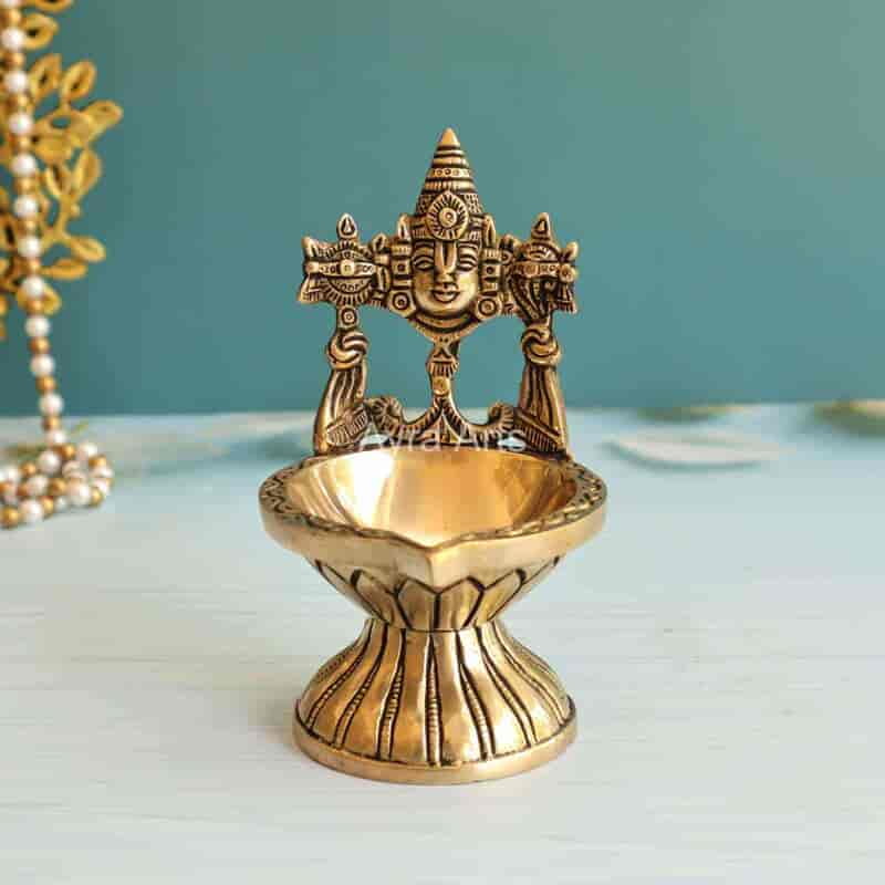 Brass Tirupati Balaji Diya Oil Lamp - 5.5 Inch Height