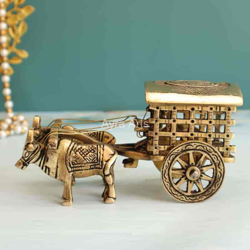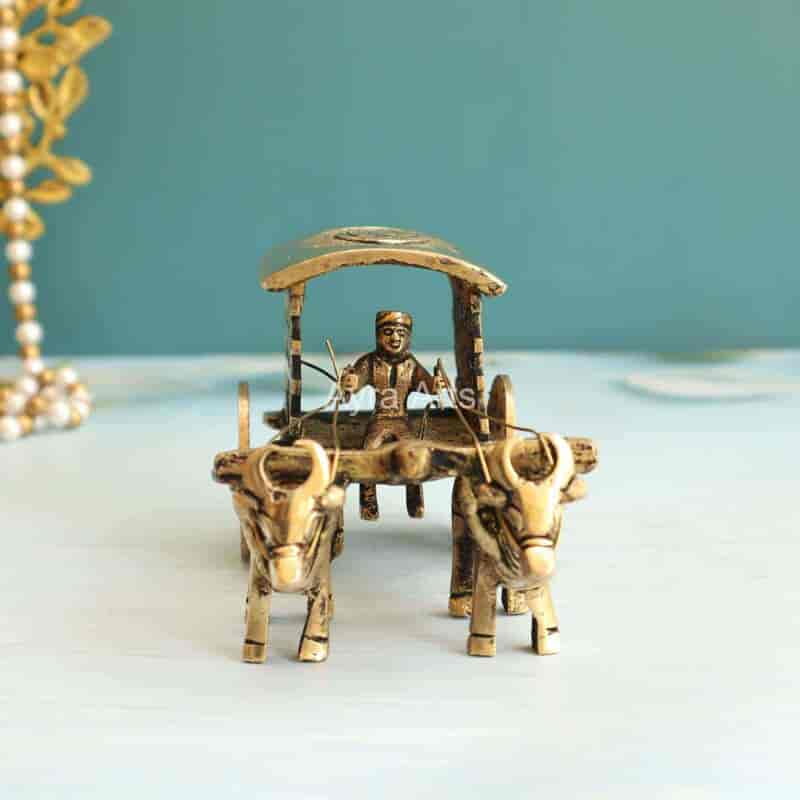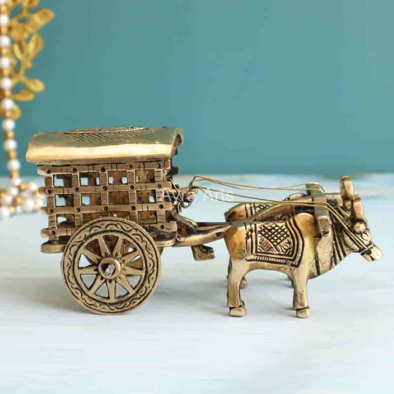 Brass Vintage Bullock Cart Showpiece - 3.5 Inch Height
