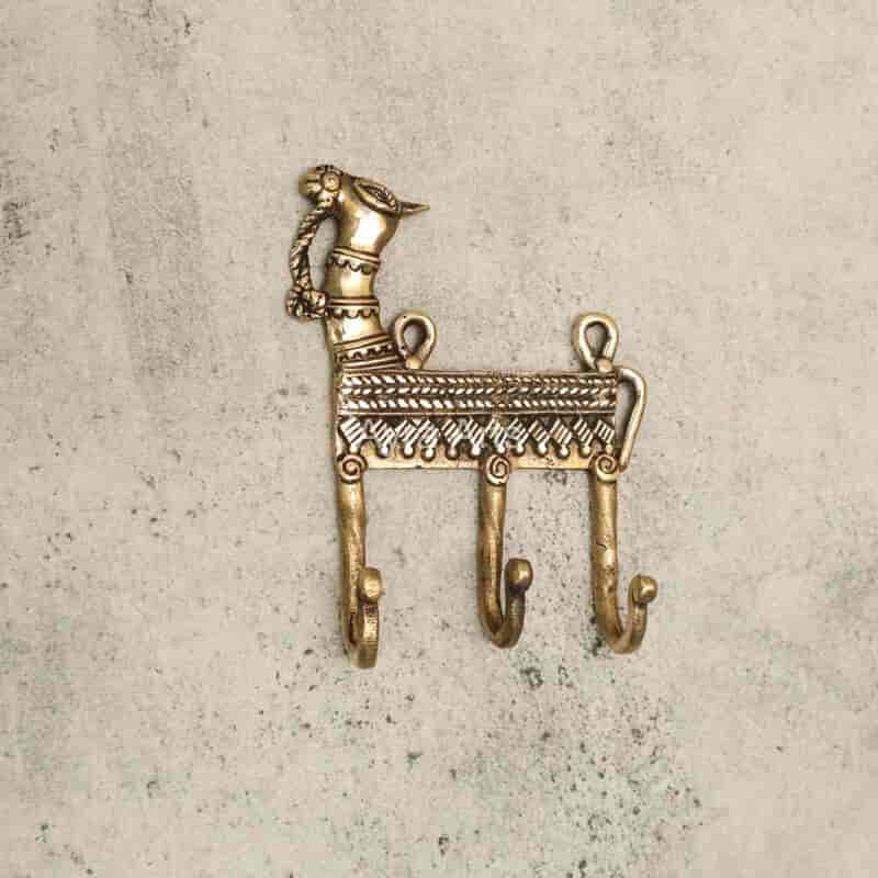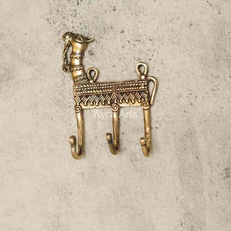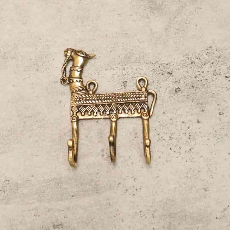 Enhance your space with this 4-inch Dhokra Art Camel Design Brass Wall Keychain or Clothes Hanger — artistic and functional.
