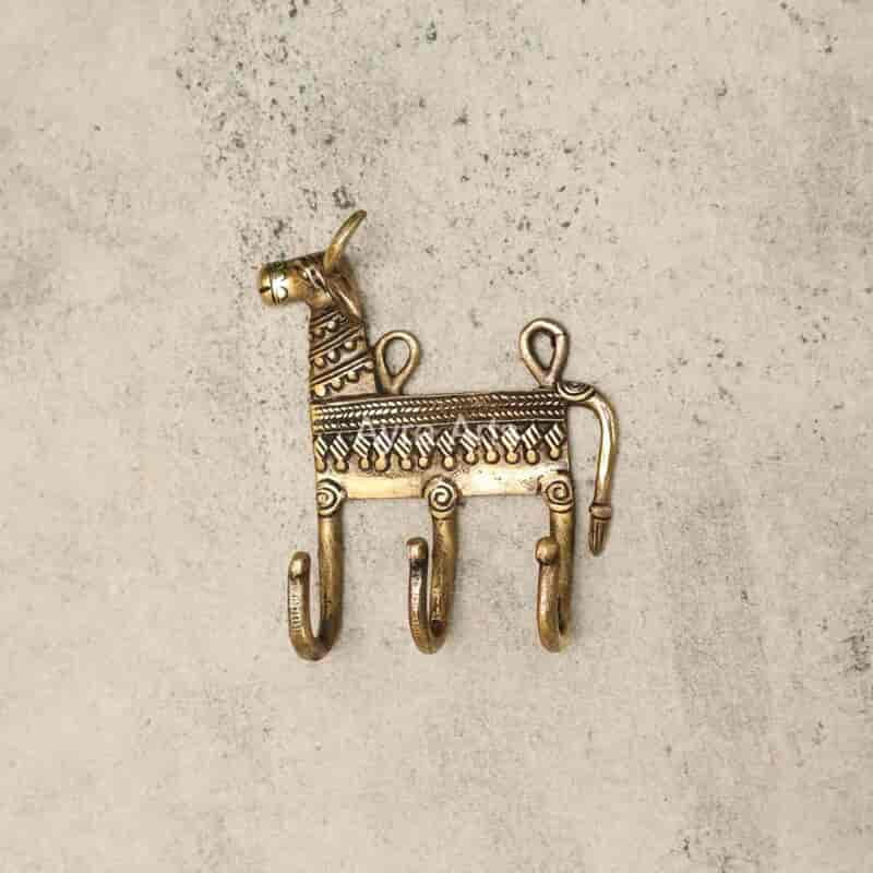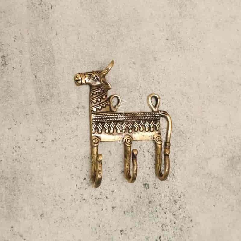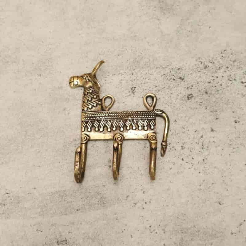 Bring heritage to your home with this 4-inch Dhokra Art Horse Design Brass Wall Keychain or Clothes Hanger — unique and handcrafted.