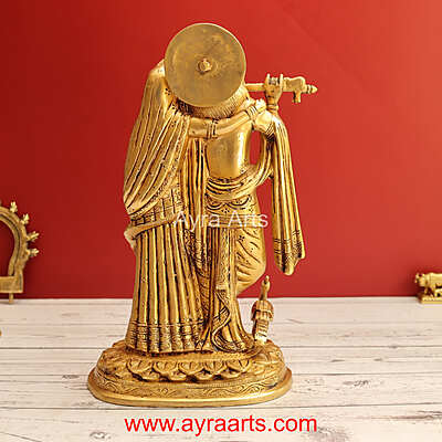 Celebrate divine love with this 12-inch standing Radha Krishna brass idol — perfect as a centerpiece for home or gifting.