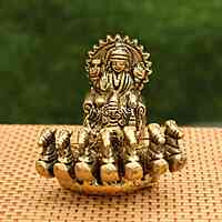 Experience the divine radiance of Lord Surya with our exquisite Lord Surya Rath Brass Statue, available for purchase online. Standing at a height of 3 inches, this meticulously crafted statue depicts Surya Dev on his chariot, symbolizing the power and energy of the sun. Perfect for your home altar, office, or sacred space, it serves as a reminder of vitality and cosmic harmony. Embrace the blessings of Lord Surya and invite his radiant presence into your life with this stunning brass statue. Purchase now and bask in the divine light of the sun god.
