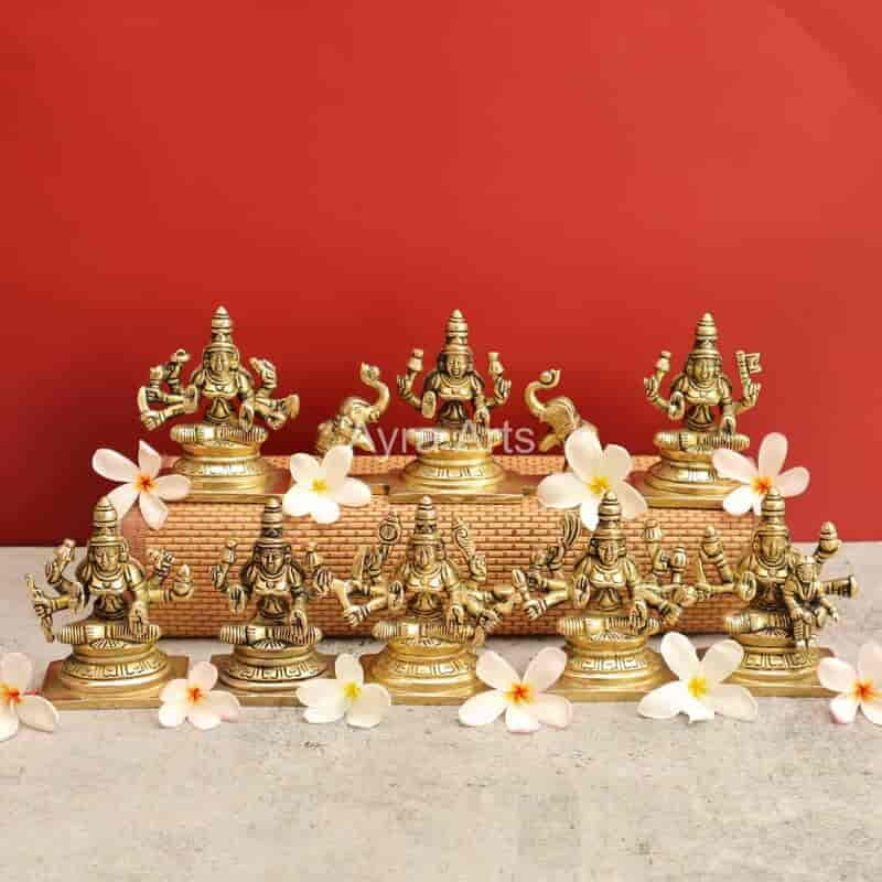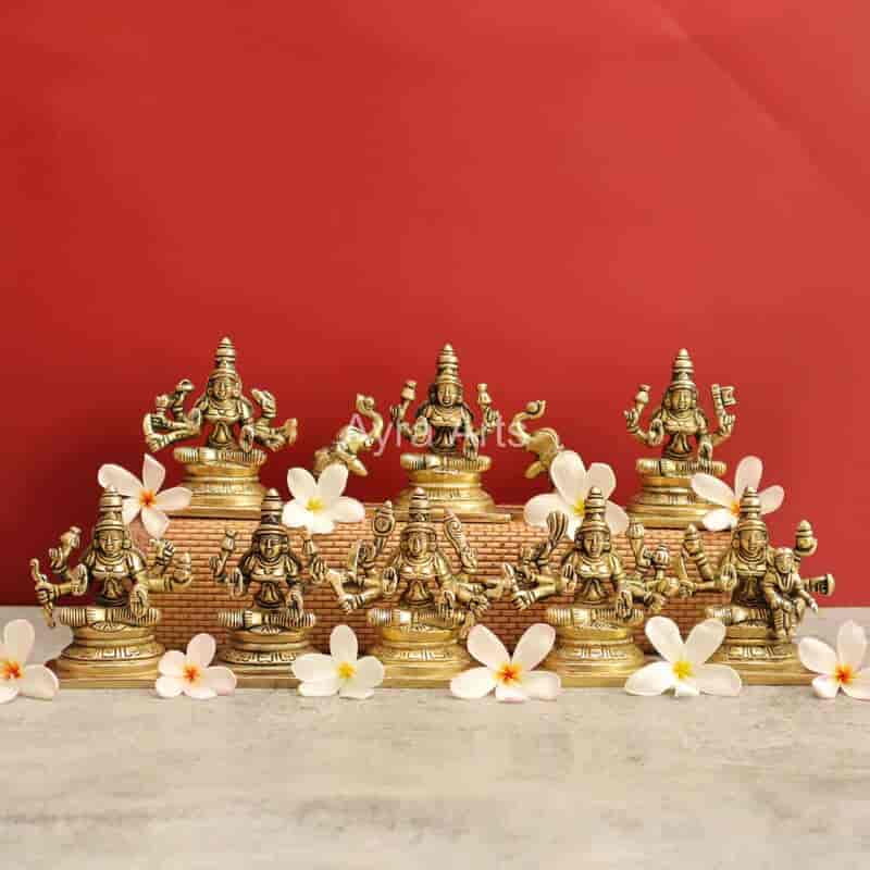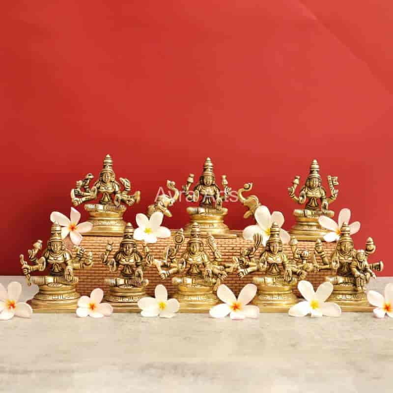 Eight Manifestations of Devi Lakshmi in Brass Ashta lakshmi Brass Idols Set Of 8 Pieces - 3.5 Inch Height