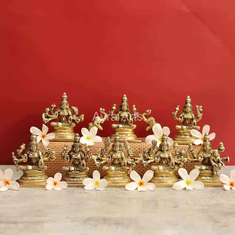 Complete your sacred space with this set of 8 brass Ashta Lakshmi idols, each 3.5 inches tall — representing the eight manifestations of Goddess Lakshmi.