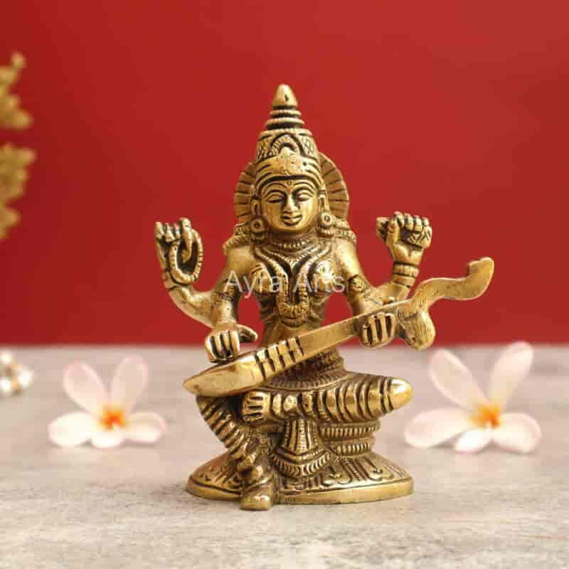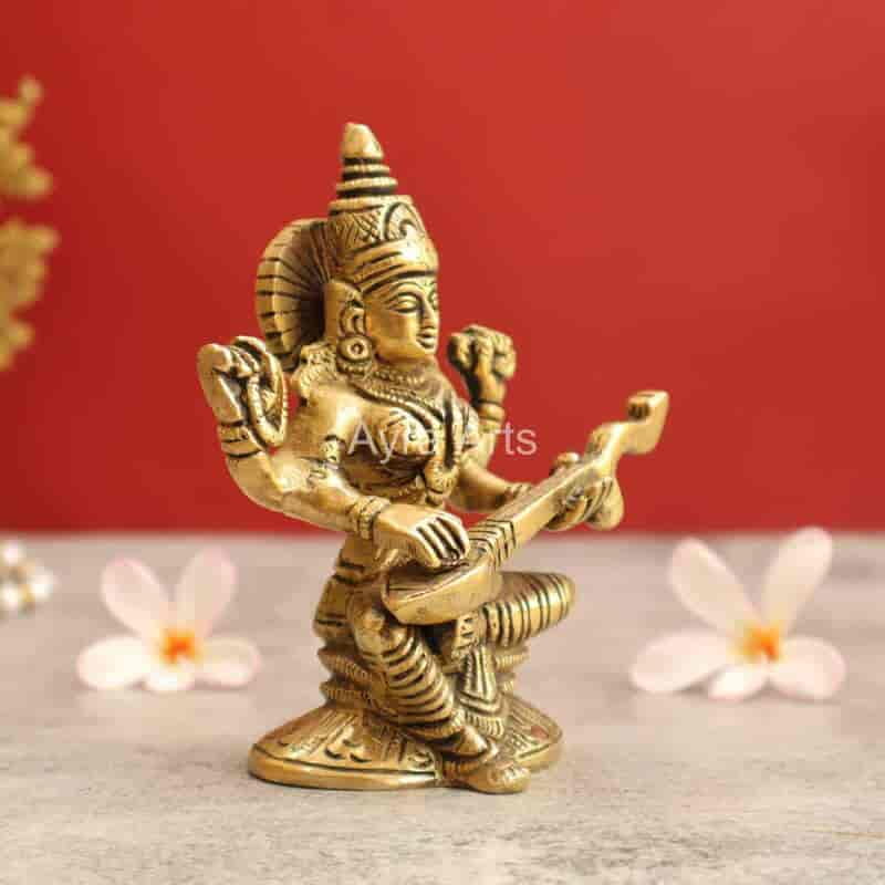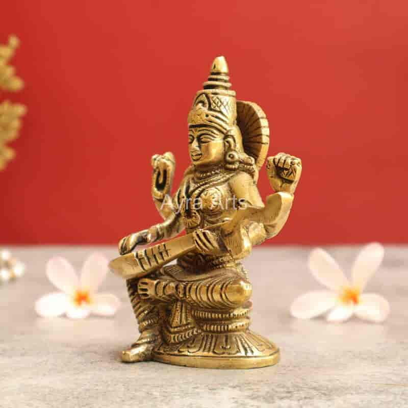 Goddess Saraswati Mata Idol in Brass - 4.7 Inch Height