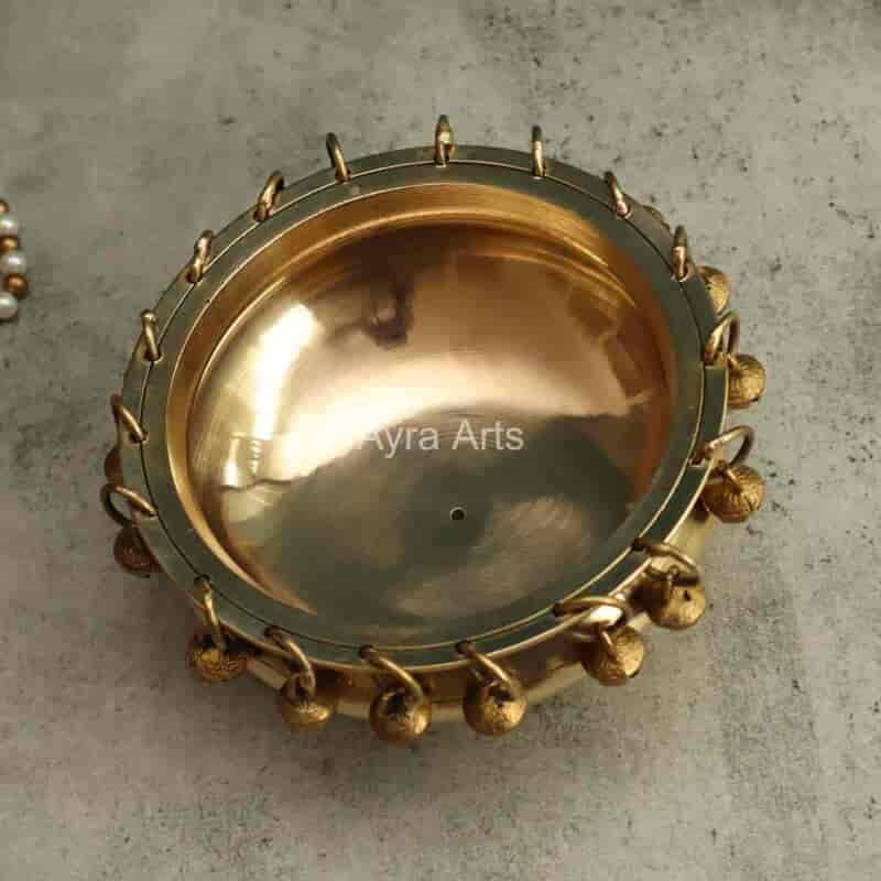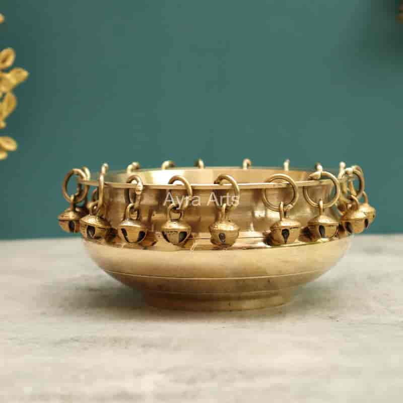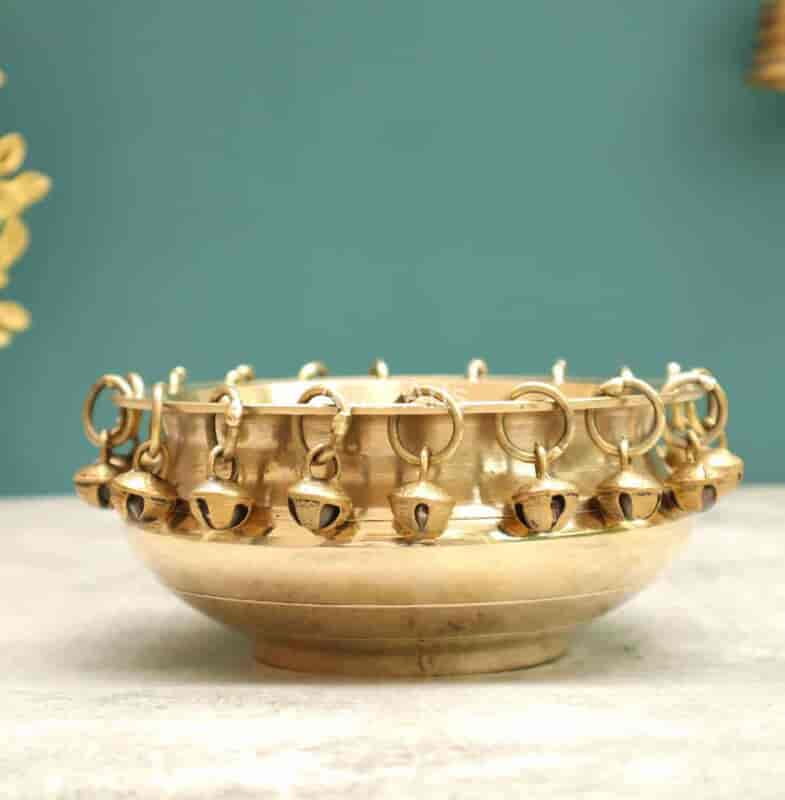 Handcrafted Brass Plain Designer Urli With Bells - 6 Inch Length