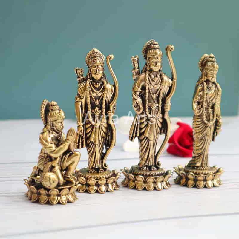 Handcrafted 4-inch Brass Ram Darbaar Set — a symbol of devotion and auspiciousness for your sacred space.