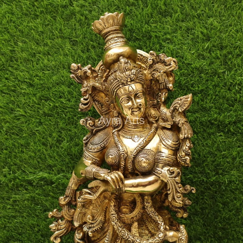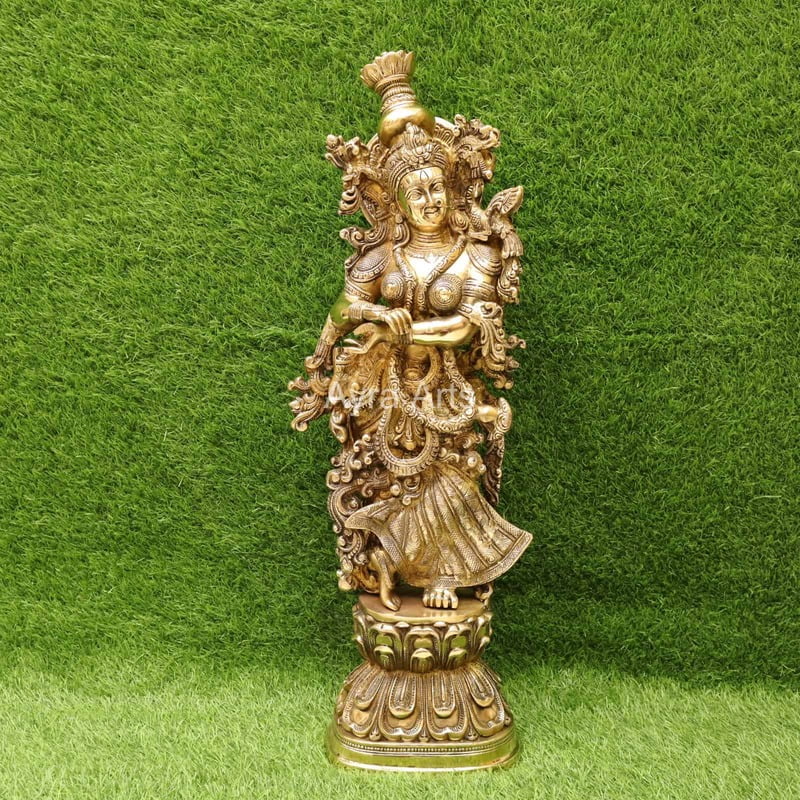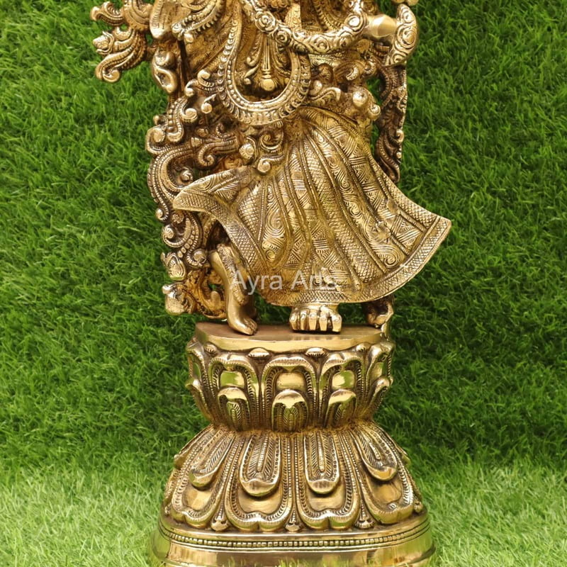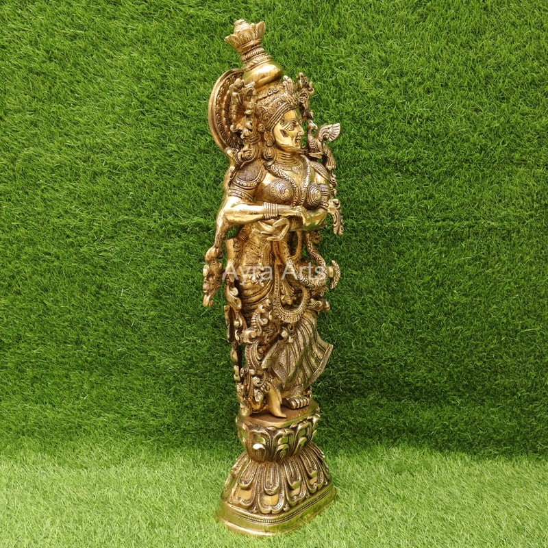 Enhance your home decor with Ayra Arts Handmade Brass Radha Idol Radha Rani Statue, standing gracefully at 29 inches in height. This exquisite masterpiece beautifully captures the divine elegance and grace of Radha Rani, symbolizing love, devotion, and spiritual beauty. Meticulously crafted from premium brass, this idol exudes timeless charm and intricate detail, making it a perfect addition to any spiritual or decorative space. Whether displayed as a centerpiece in your home altar or as a stunning accent piece, this creation from Ayra Arts invites an atmosphere of reverence, serenity, and spiritual connection, bringing the divine presence of Radha Rani into your home.