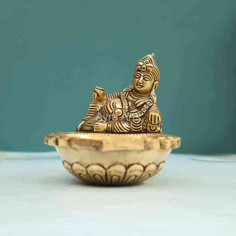 Light your rituals with this 6-inch Handmade Pure Brass Kuber Diya — a divine oil lamp perfect for offerings.