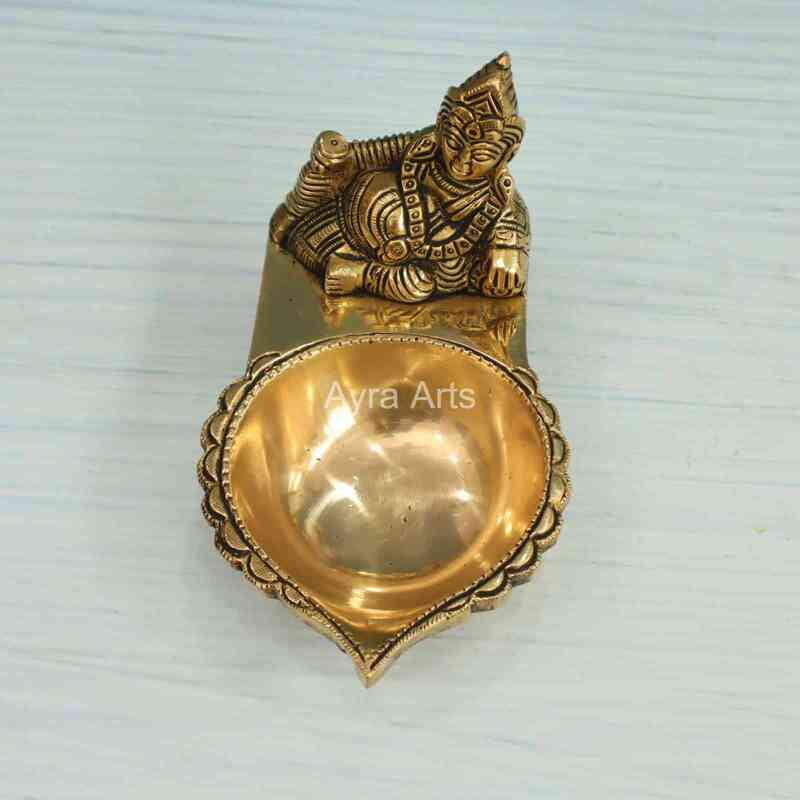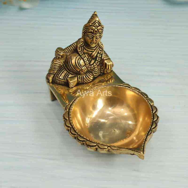 Handmade Pure Brass Kuber Diya Puja Brass Oil Lamp for divine offering - 6 Inch Length
