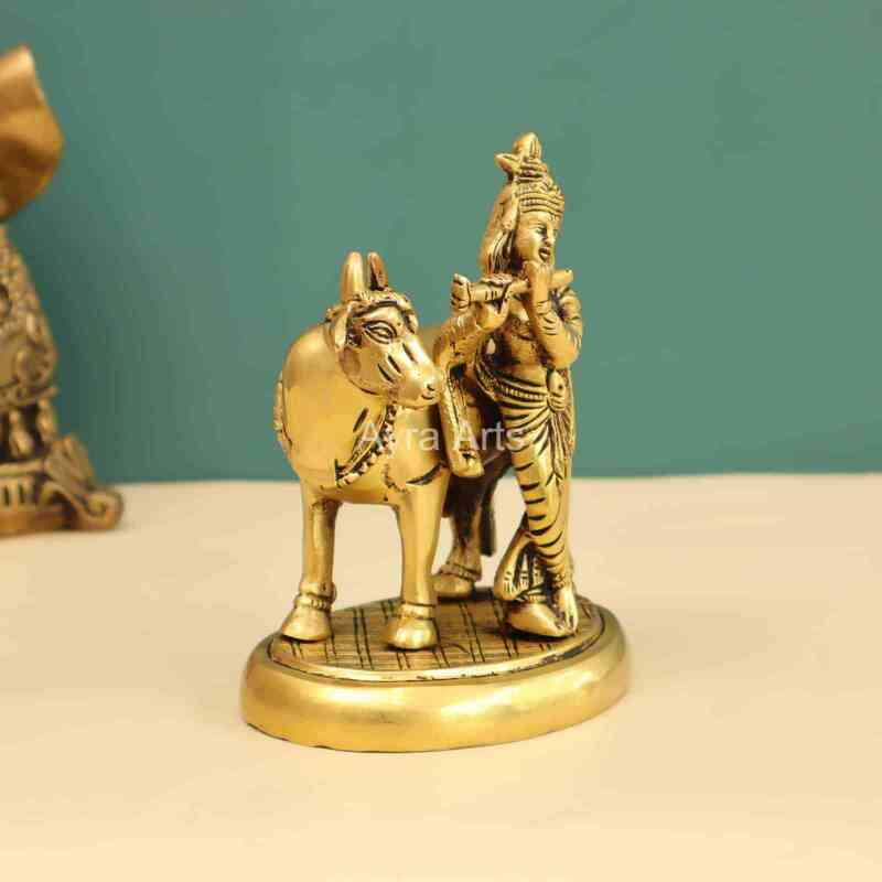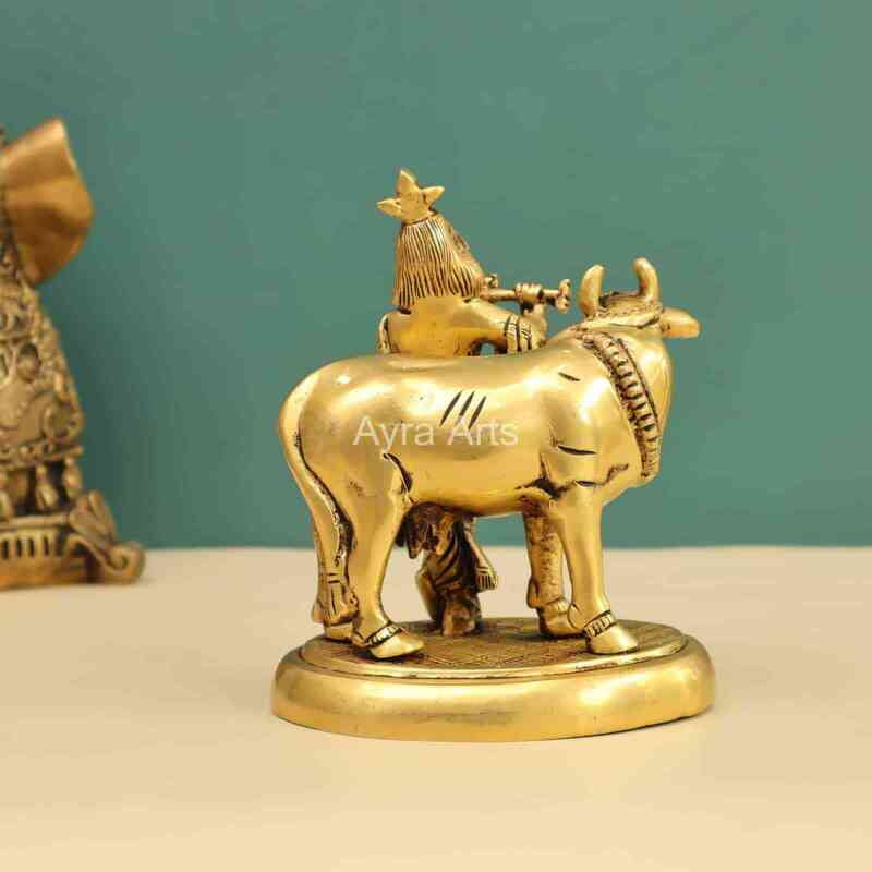Bring home peace with this 6-inch Lord Krishna With Cow Brass Idol — symbolizing love and compassion.