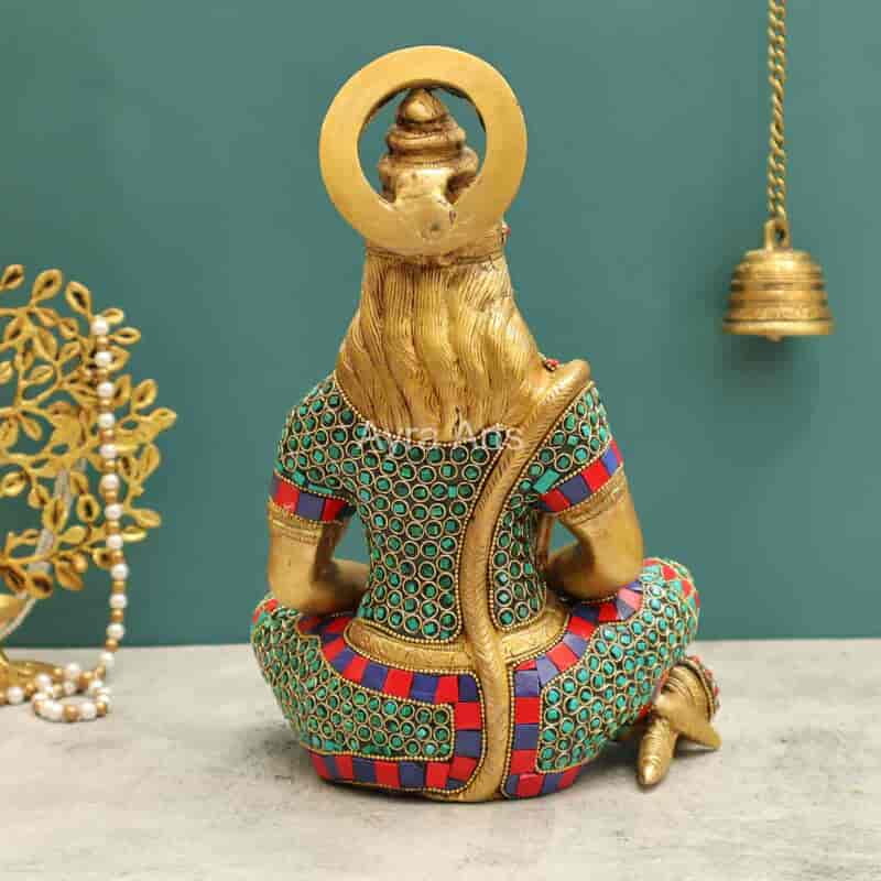 Meditate with this 11-inch Maharudra Tapas Hanuman in Dhyanam Brass Idol with Stone Work — inspiring and divine.