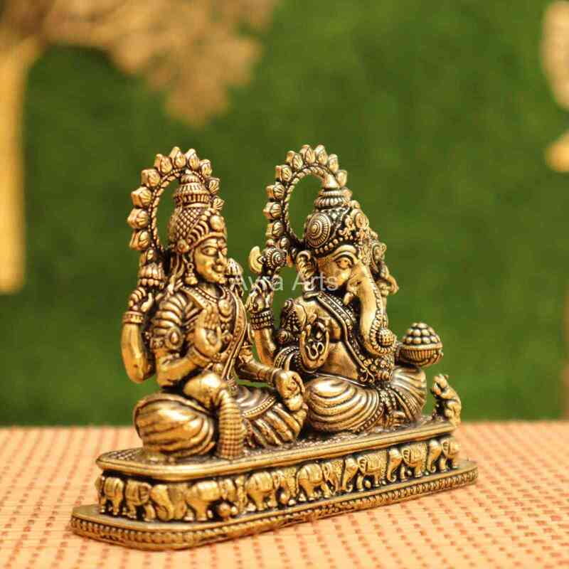 Premium Brass Lakshmi Ganesh Idol - 3 Inch Height
