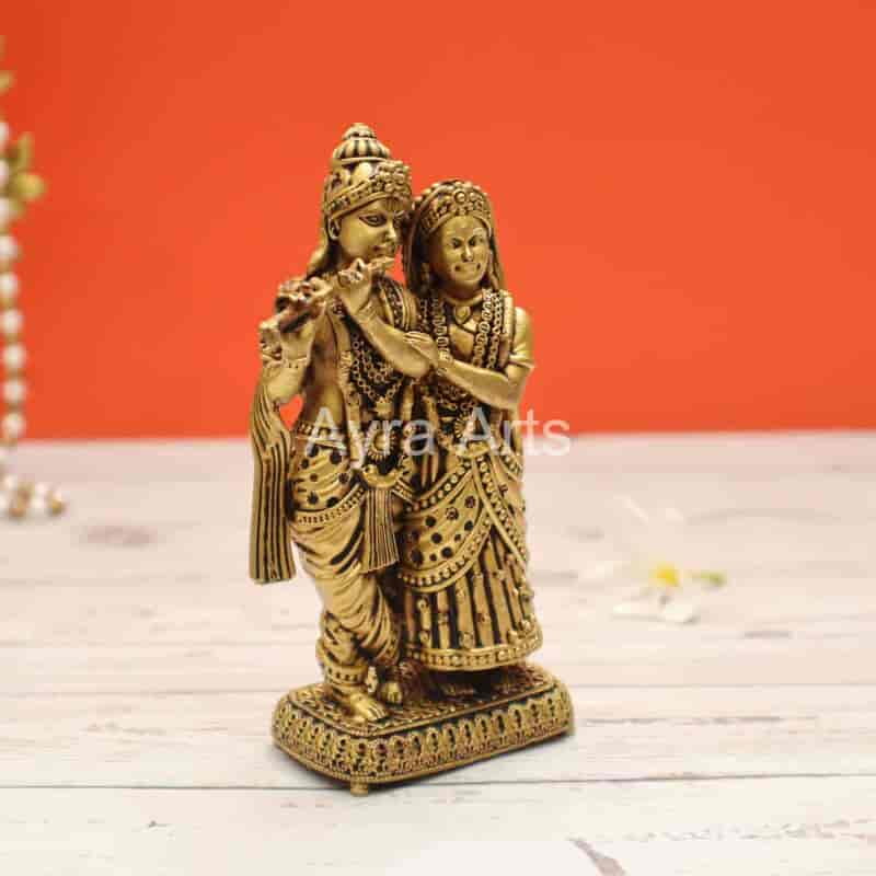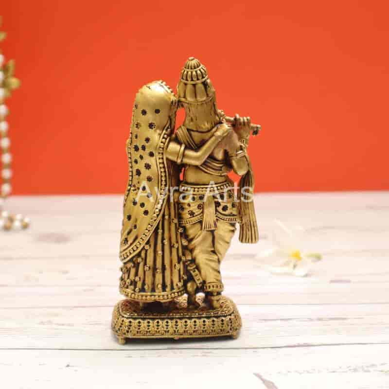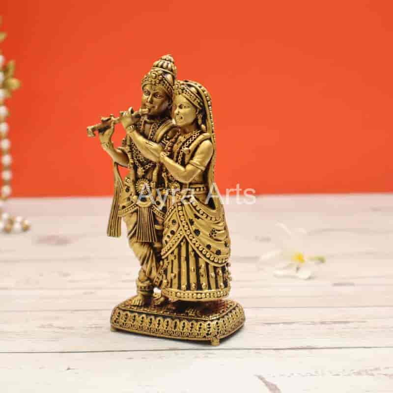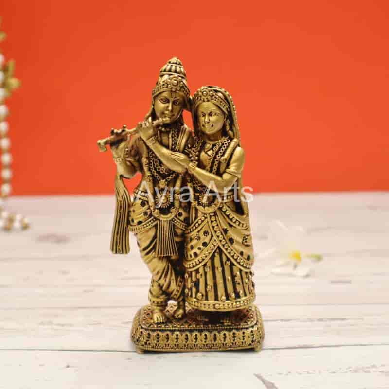 Add grace to your decor with this 5-inch Premium Brass Radha Krishna idol — a symbol of divine love.