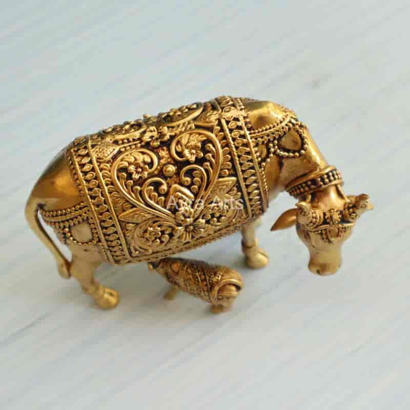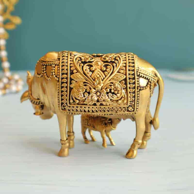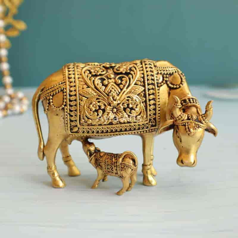 Add grace with this 3-inch Premium Brass Surabhi Cow and Calf Idol — symbolizing prosperity and nurturing.