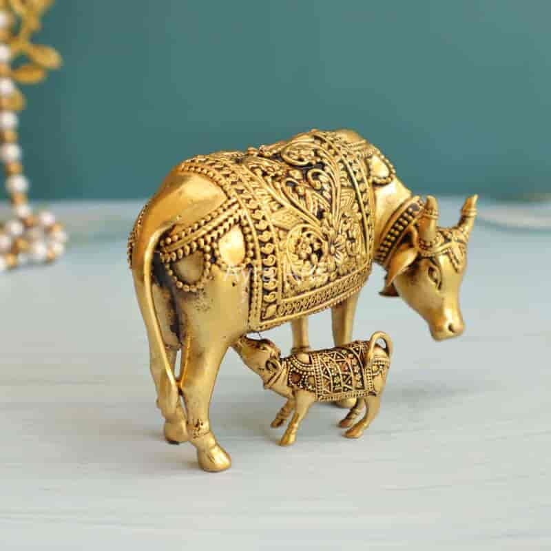 Premium Brass Surabhi Cow And Calf Idol - 3 Inch Height