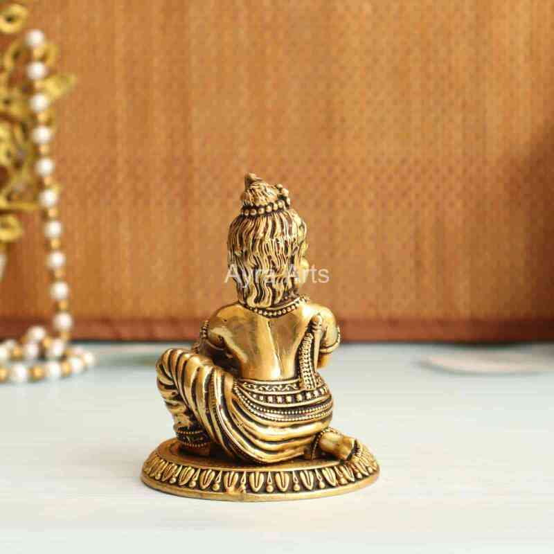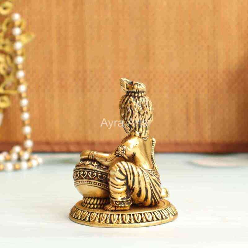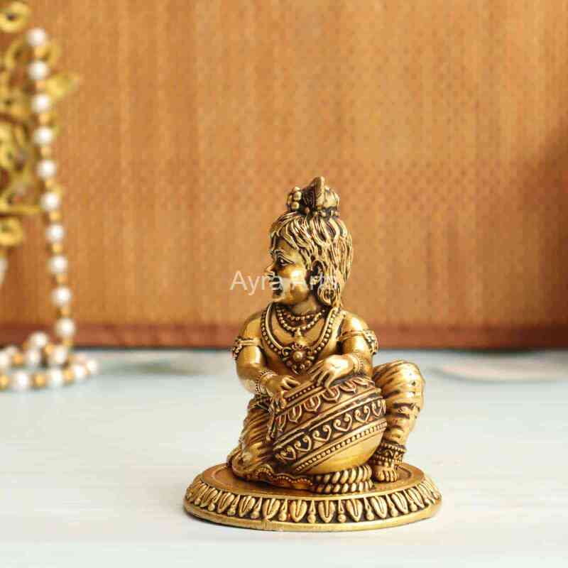 Introducing Ayra Arts Premium Light Weight Beautiful Makhan Chor Bal Gopal Krishna, standing gracefully at 3.8 inches in height. Meticulously crafted, this exquisite masterpiece captures the divine essence of Lord Krishna, known as the Makhan Chor or Butter Thief in his childhood form. Made from high-quality brass, this idol exudes timeless elegance and spiritual significance while being lightweight for easy handling. The intricate detailing adds a touch of beauty and charm to this divine creation. Whether adorning your home altar, during Pooja ceremonies, or as a decorative accent, this creation from Ayra Arts invites blessings and adds a touch of sacredness and beauty to your space, fostering an atmosphere of devotion, happiness, and spiritual fulfillment.