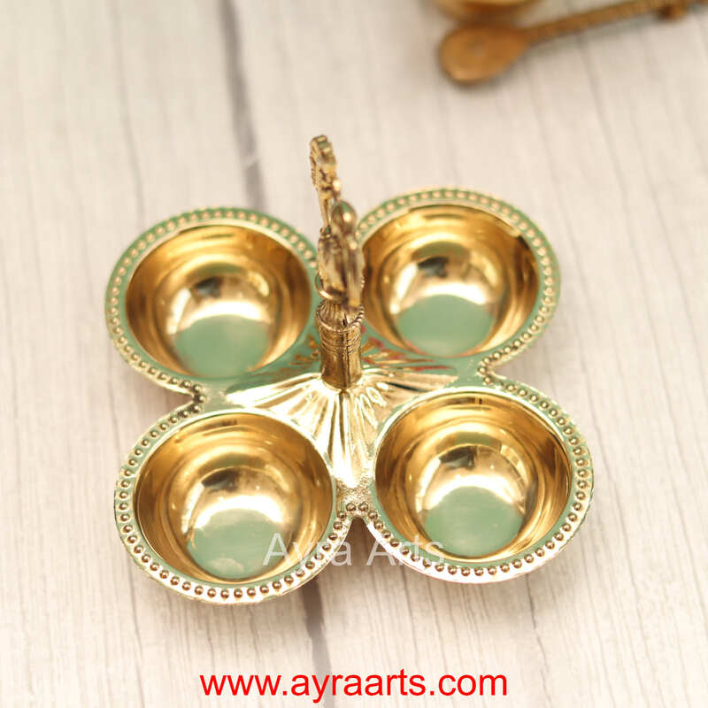 Pure Brass Peacock Design Holder Candy Basket Chowmukh Chopala / Choupala / Panchpali Bowl Stand Haldi, Kumkum, Chawal, Sindoor Holder Size 1 - 4.5 Inch Length