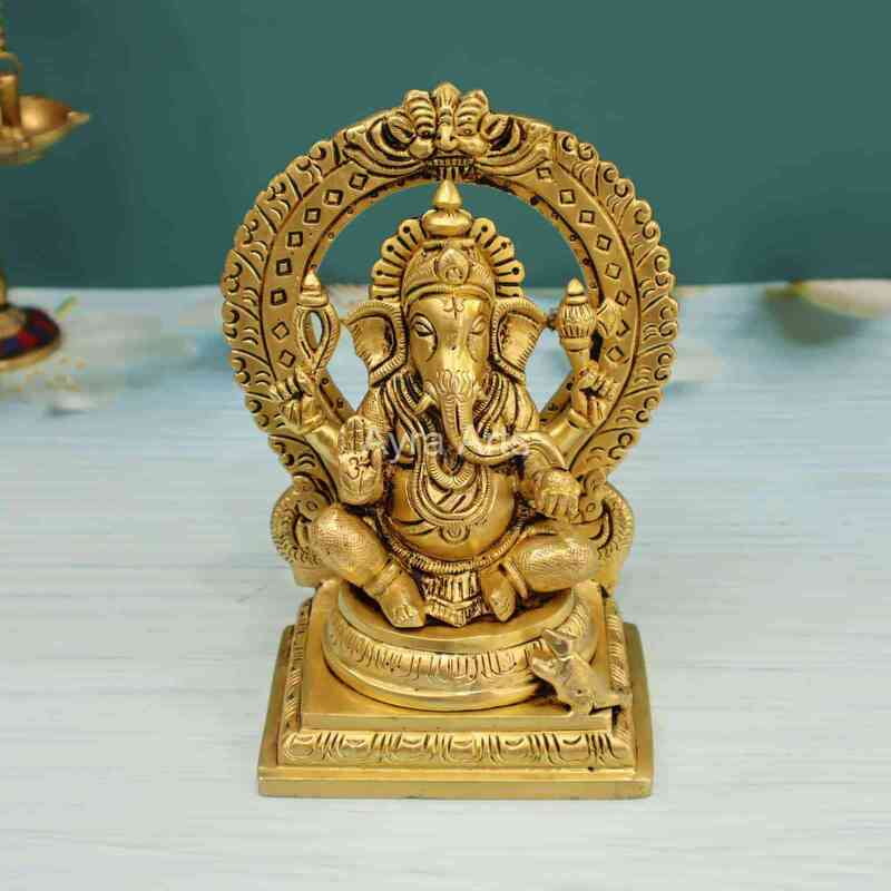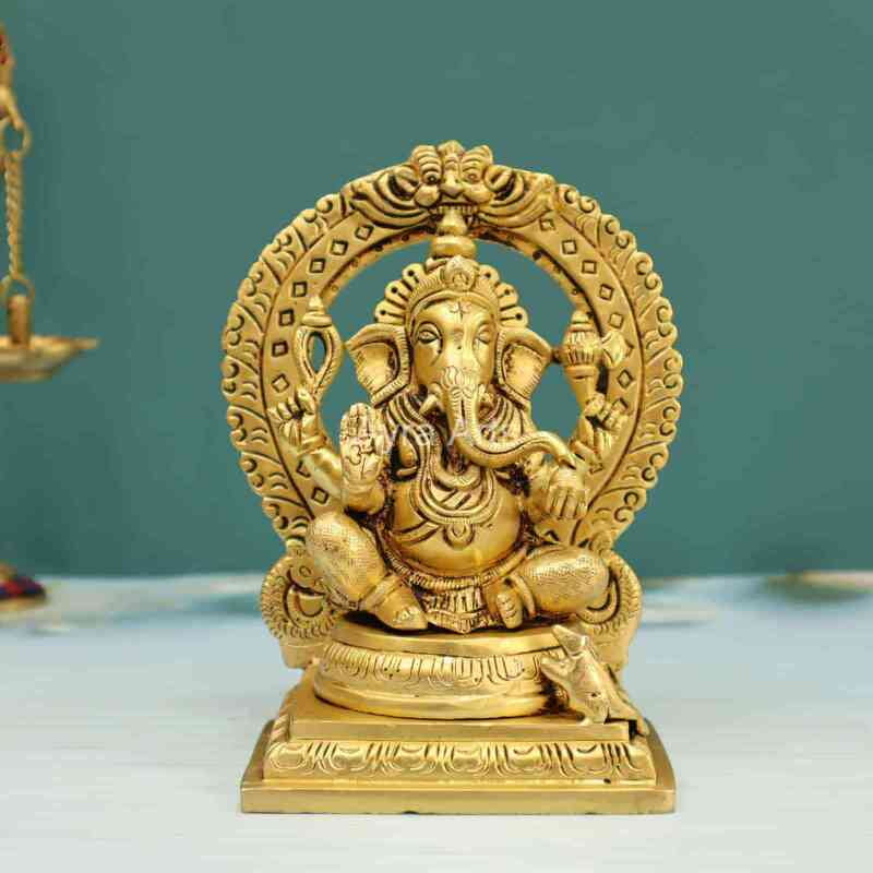 Solid Brass Ganesh Idol With Makara Thoranam - 6.8 Inch Height