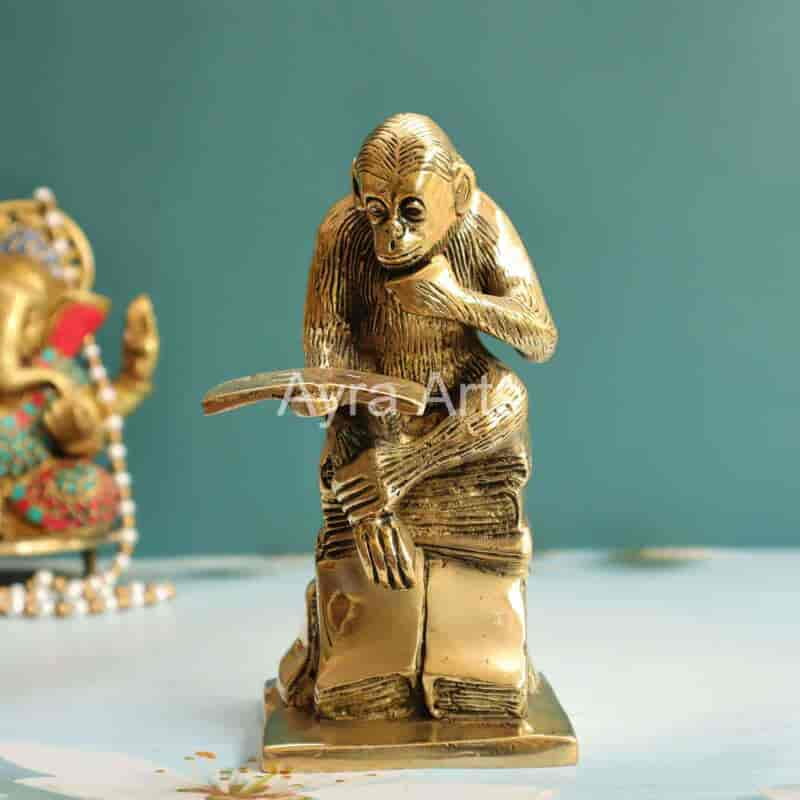 Unique Brass Decor Statue of Monkey Reading Book - 7 inch Height