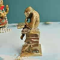 Unique Brass Decor Statue of Monkey Reading Book - 7 inch Height