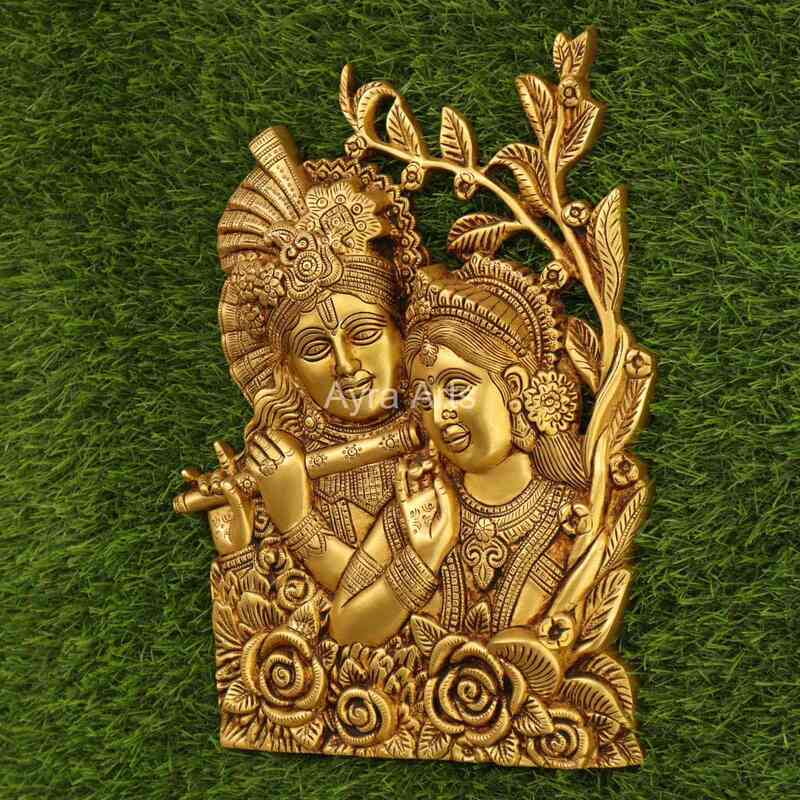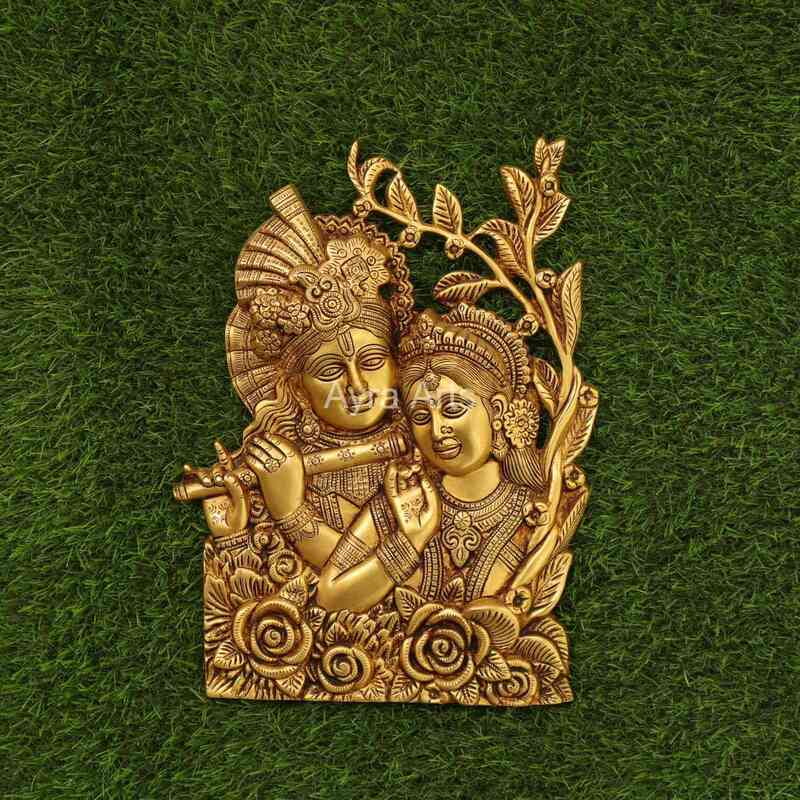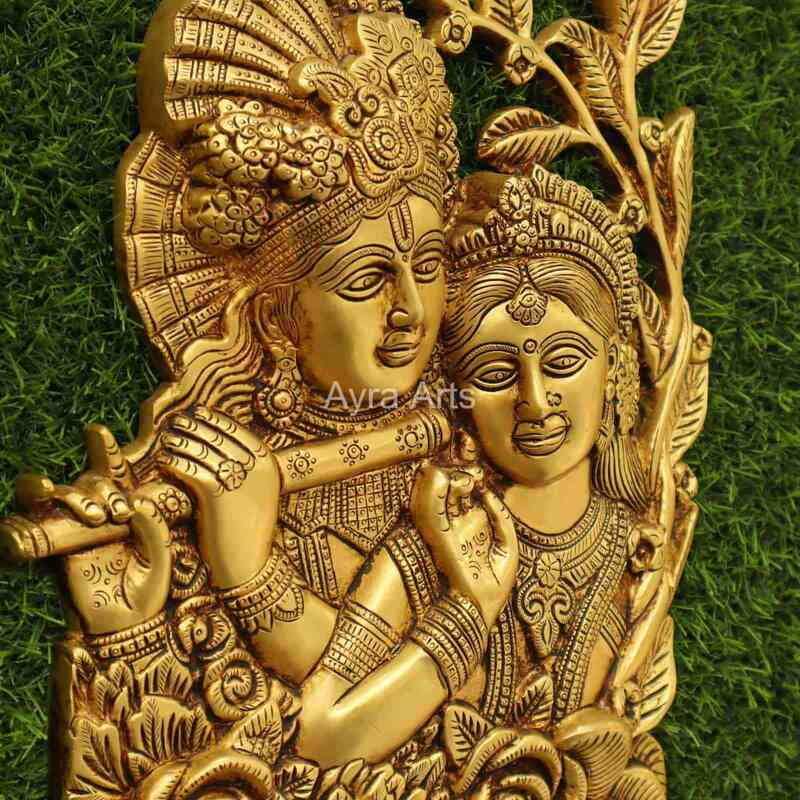 Wall Mounted Brass Radha Krishna Wall Hanging 14 Inch Height